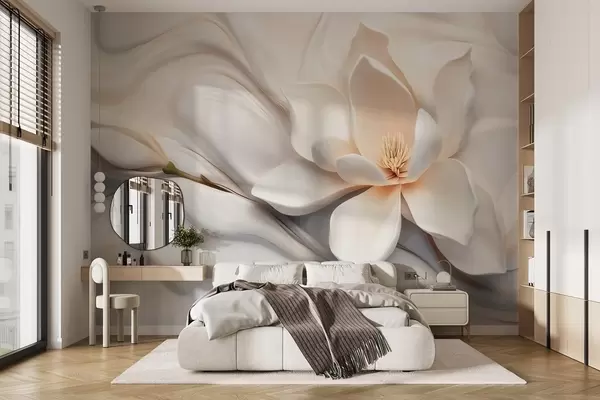 Fototapety Trojrozměrná bílá magnólie s imitací mramorové textury v reliéfu Č. w09729