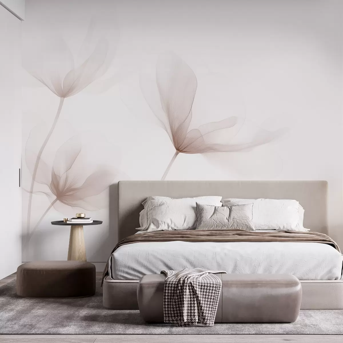 Fototapety Vzdušné béžové květiny v minimalistickém lehkém stylu Č. w09734