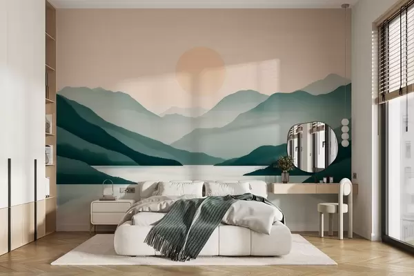 Fototapety Klidná horská krajina se sluncem nad jezerem Č. w09735