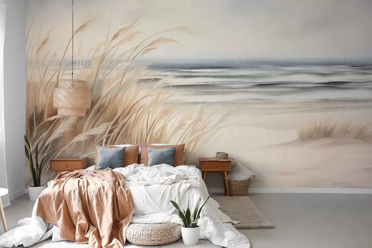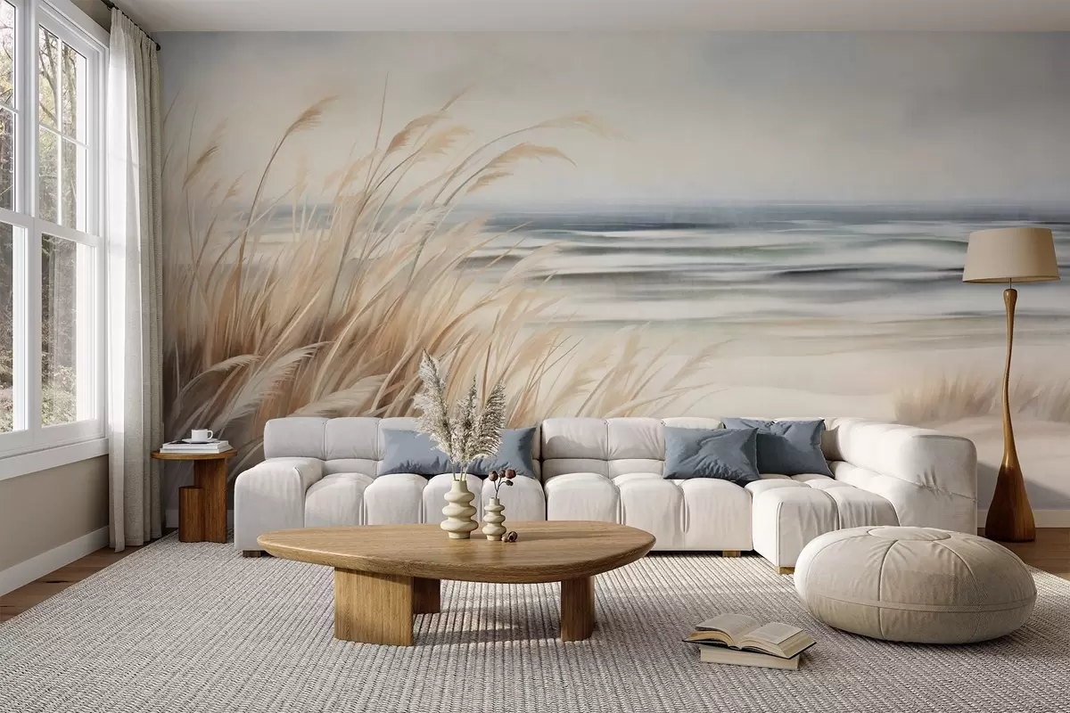 Fototapety Texturovaná krajina se suchou trávou na písečné pláži, s oceánem a oblohou v pozadí Č. w09739