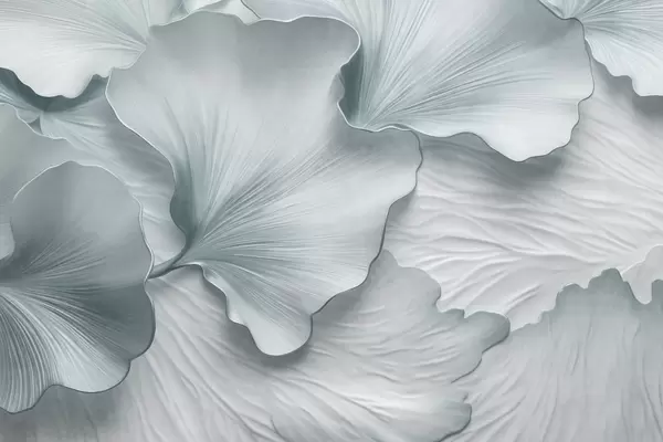 Fototapety Texturované, béžové a bílé okvětní lístky ginkga s jemným organickým potiskem Č. w09741