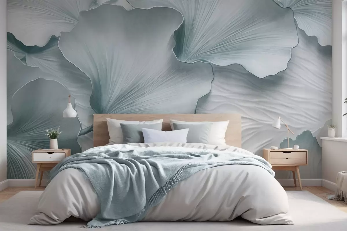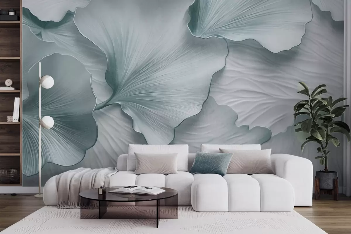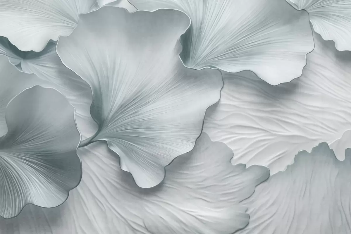 Fototapety Texturované, modré a bílé okvětní lístky ginkga s jemným organickým potiskem Č. w09741v1