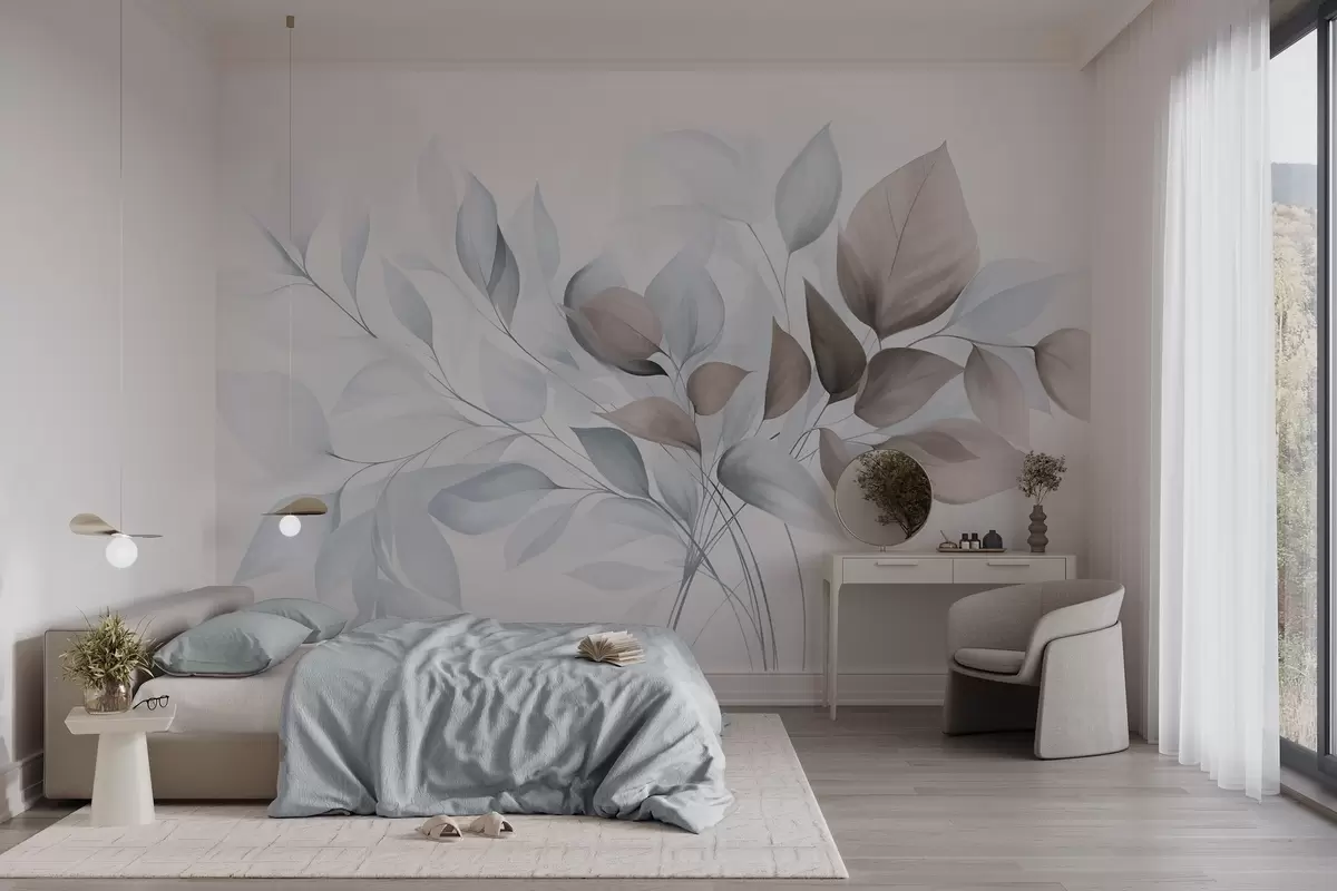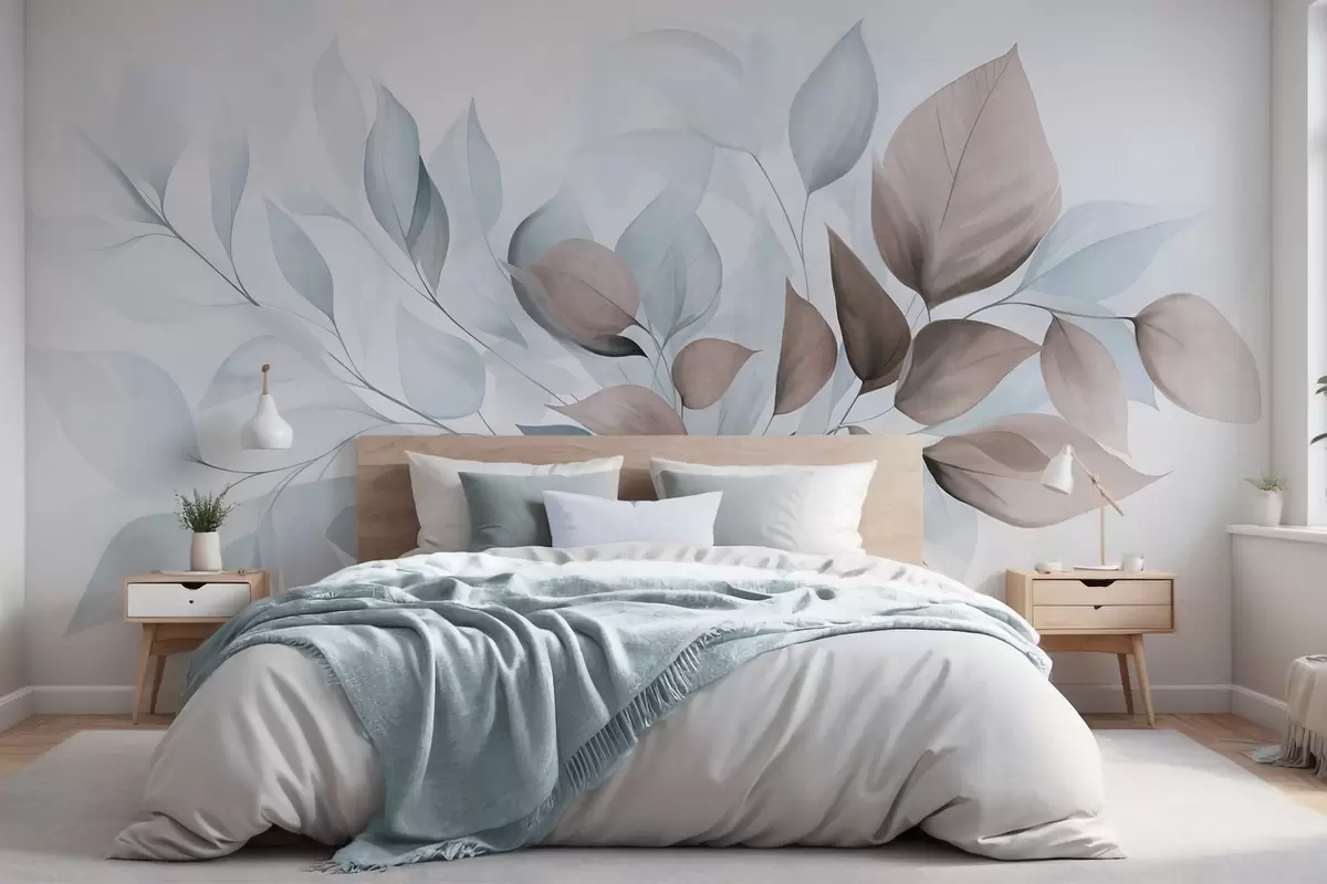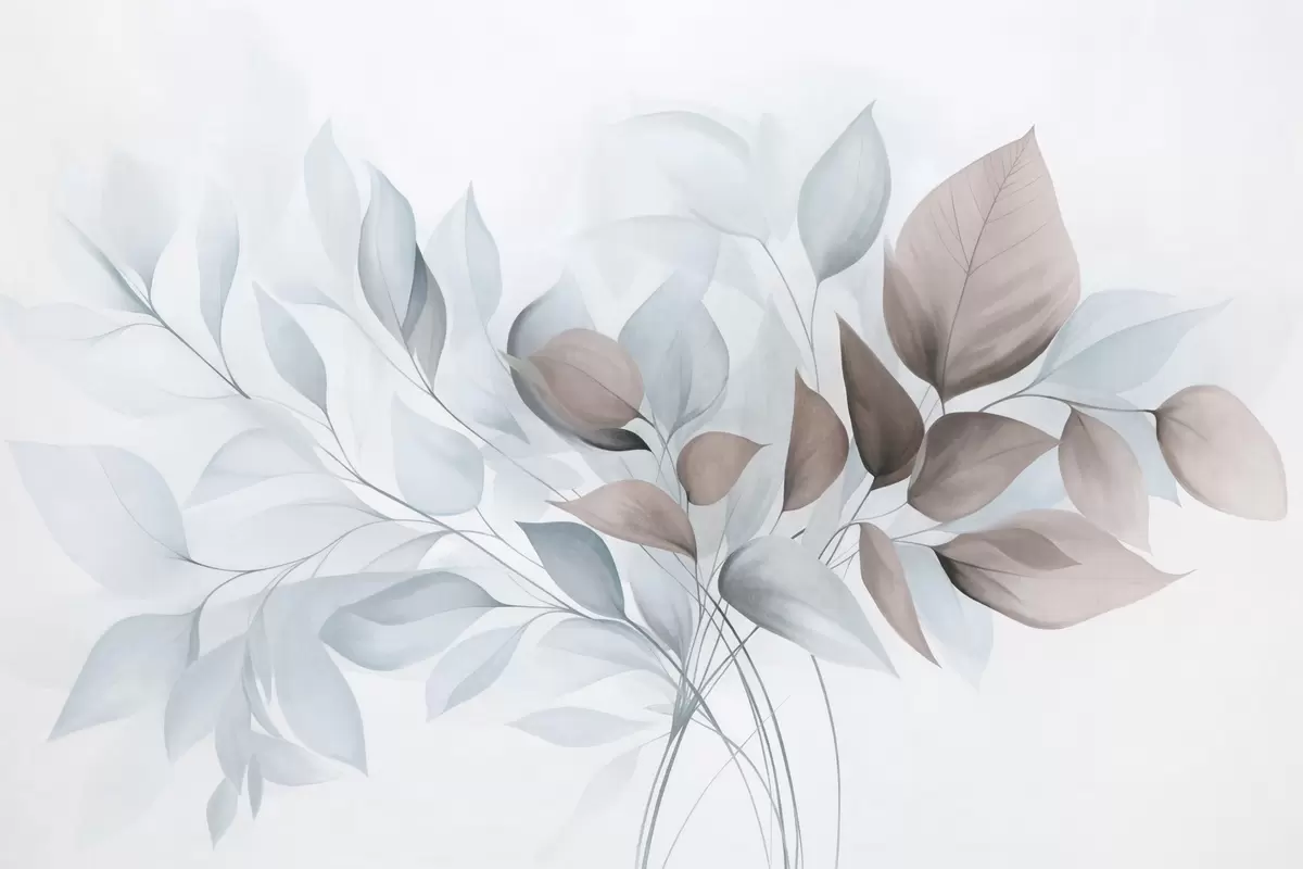 Fototapety Abstraktní průsvitné listy v odstínech modré, béžové a hnědé, texturované umění Č. w09744v1