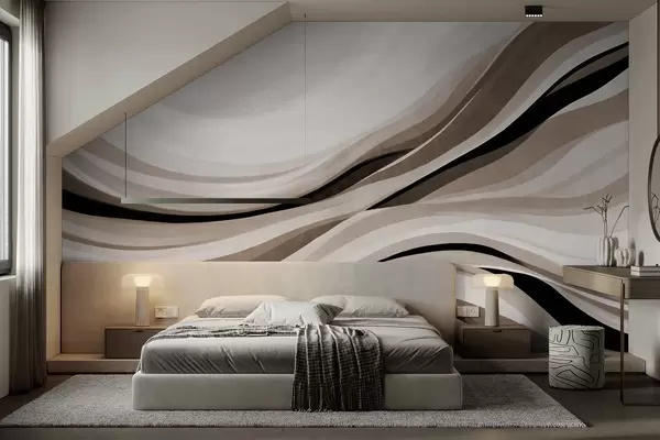 Fototapety Abstraktní vlnovky v odstínech béžové a černé na světlém pozadí, texturované umění Č. w09748