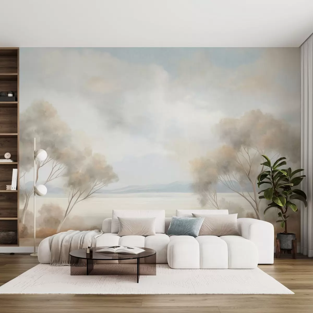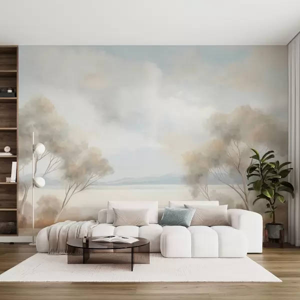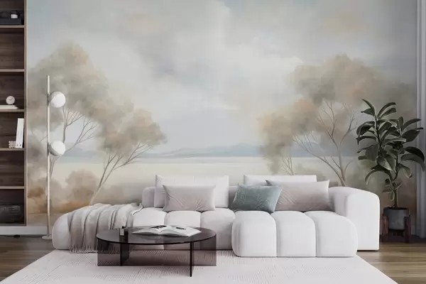 Fototapety Malířský styl s texturou krajiny se stromy pod zamračenou oblohou Č. w09753