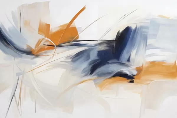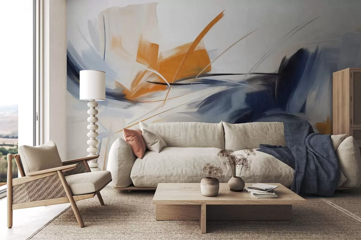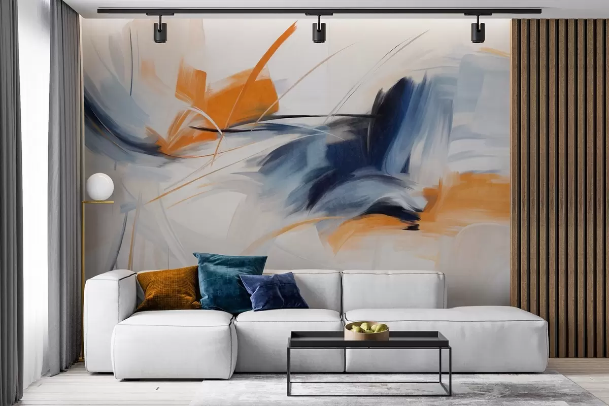 Fototapety Abstraktní malířský styl s oranžovými a modrými texturovanými tahy štětcem Č. w09755