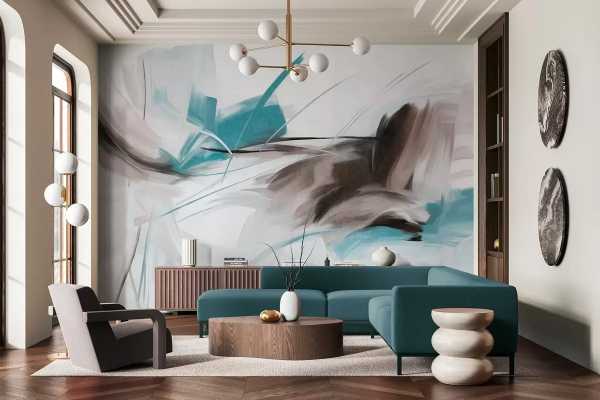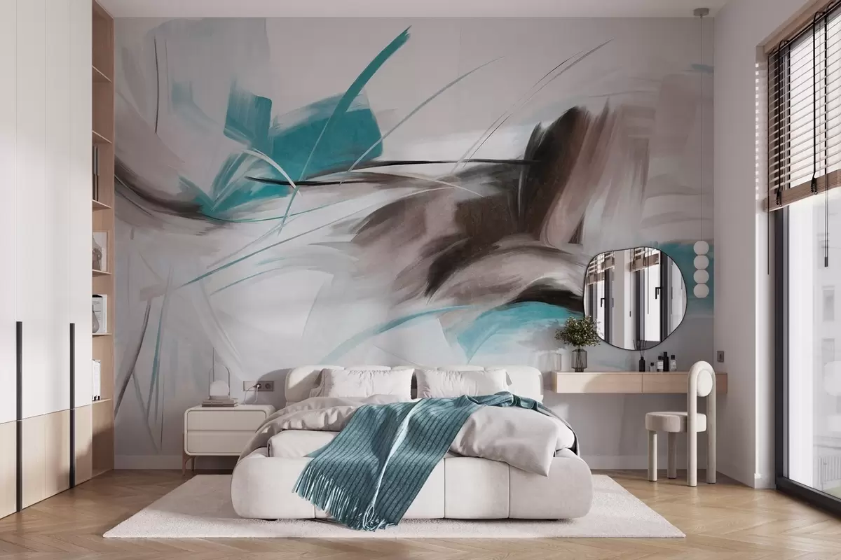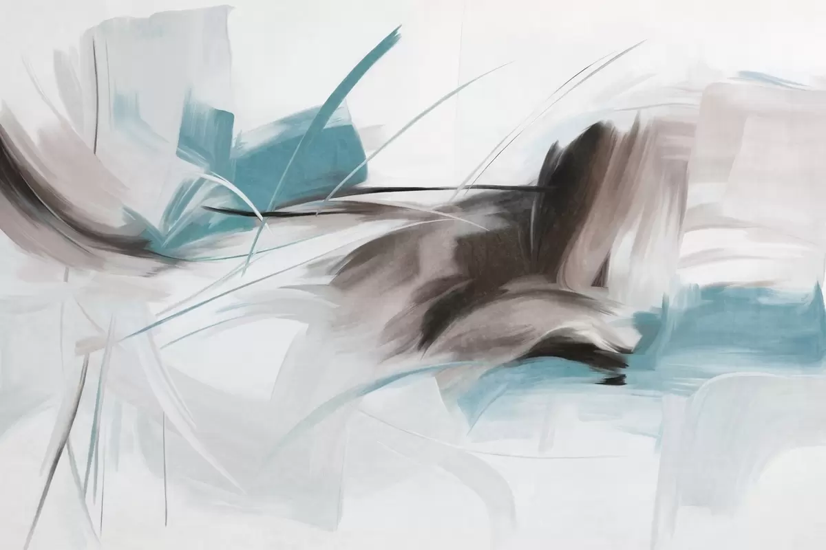 Fototapety Abstraktní malířský styl s hnědými a modrými texturovanými tahy štětcem Č. w09755v1