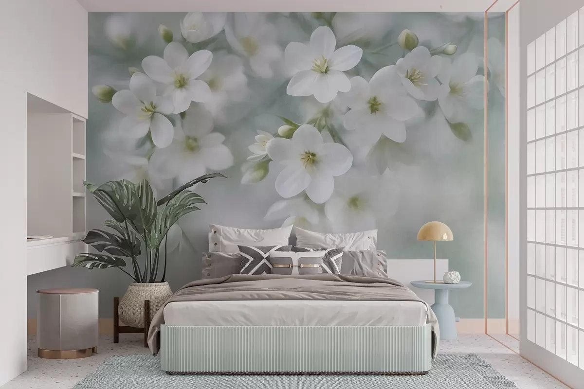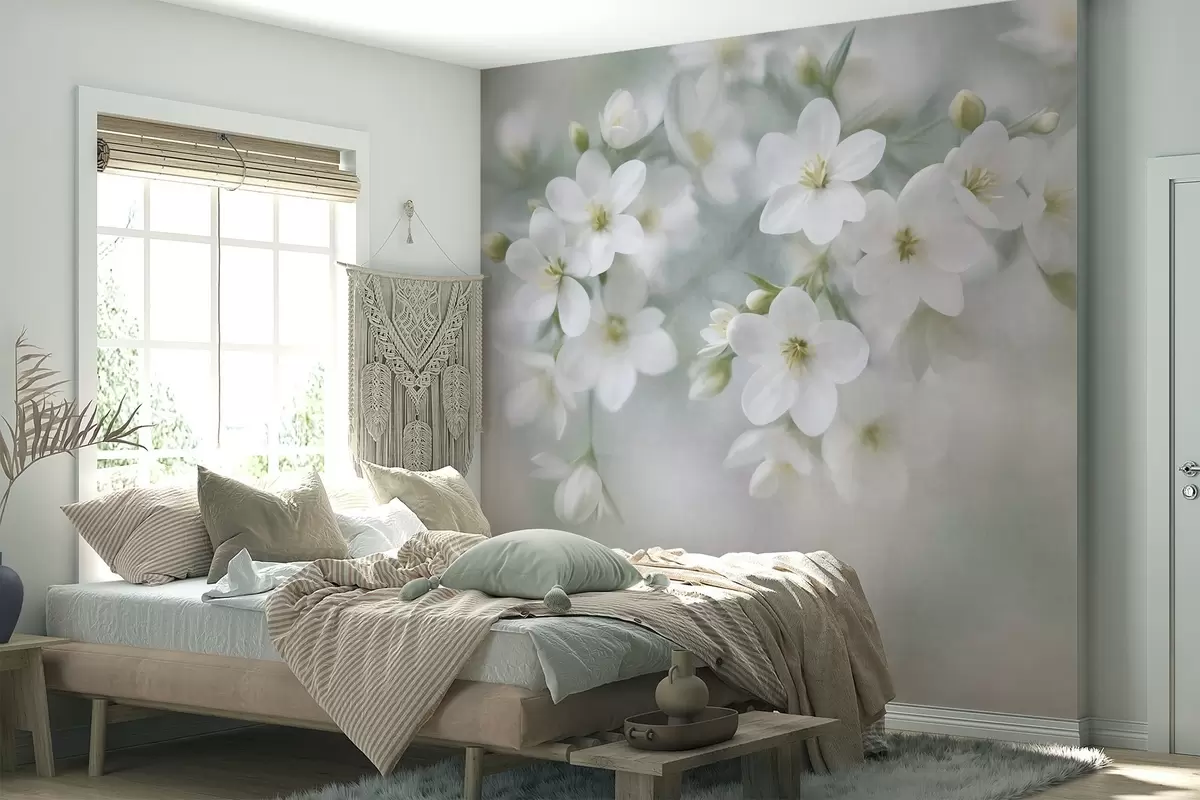 Fototapety Jemně strukturované bílé květy, které se v pozadí jemně rozplývají Č. w09759