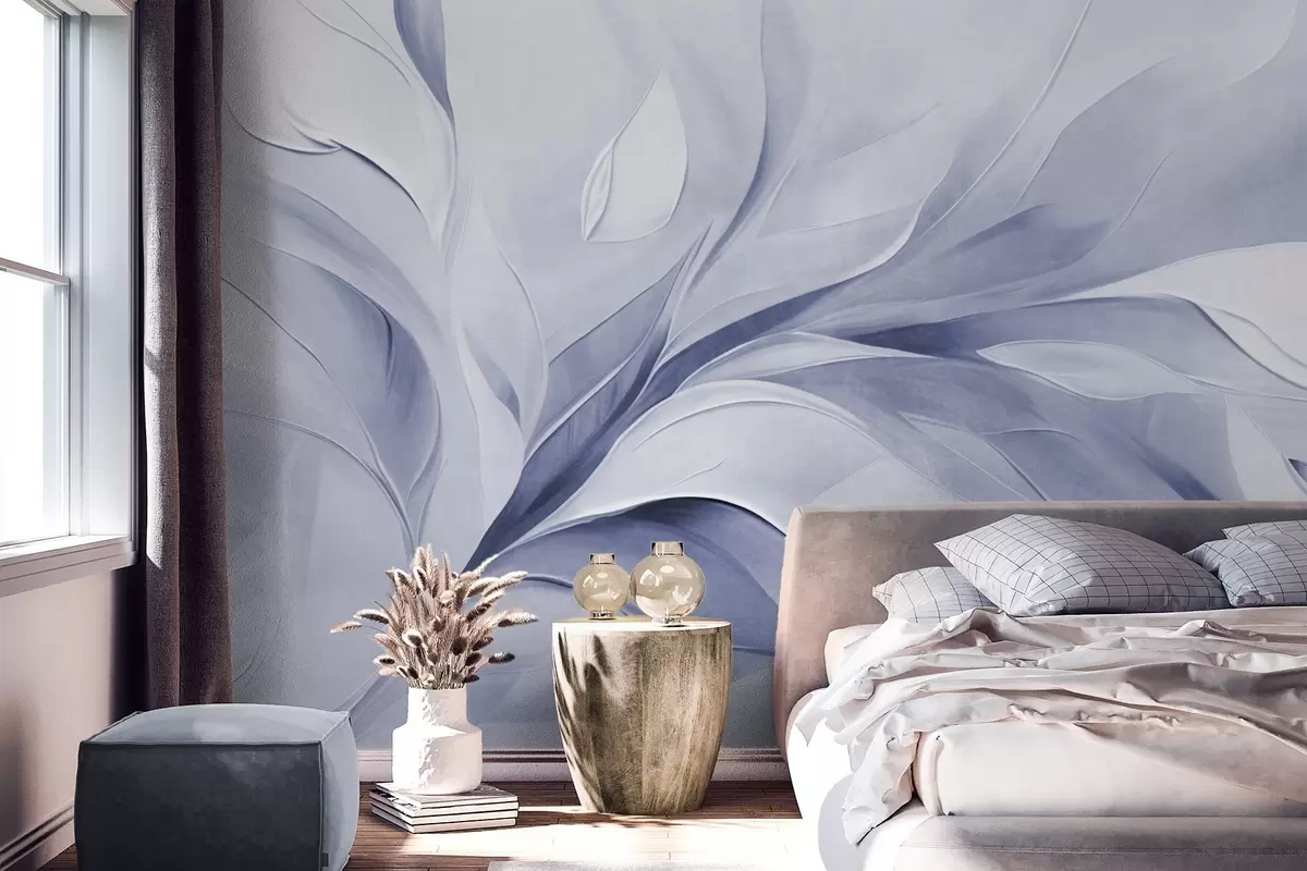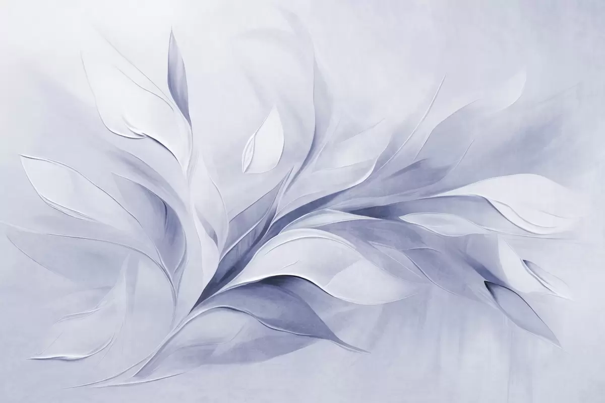 Fototapety Abstraktní texturovaný malířský styl v bledě modré a bílé barvě s plynoucími listy Č. w09765