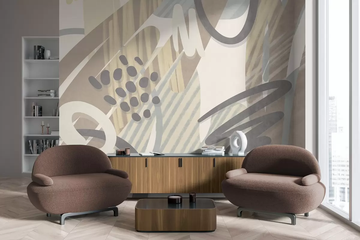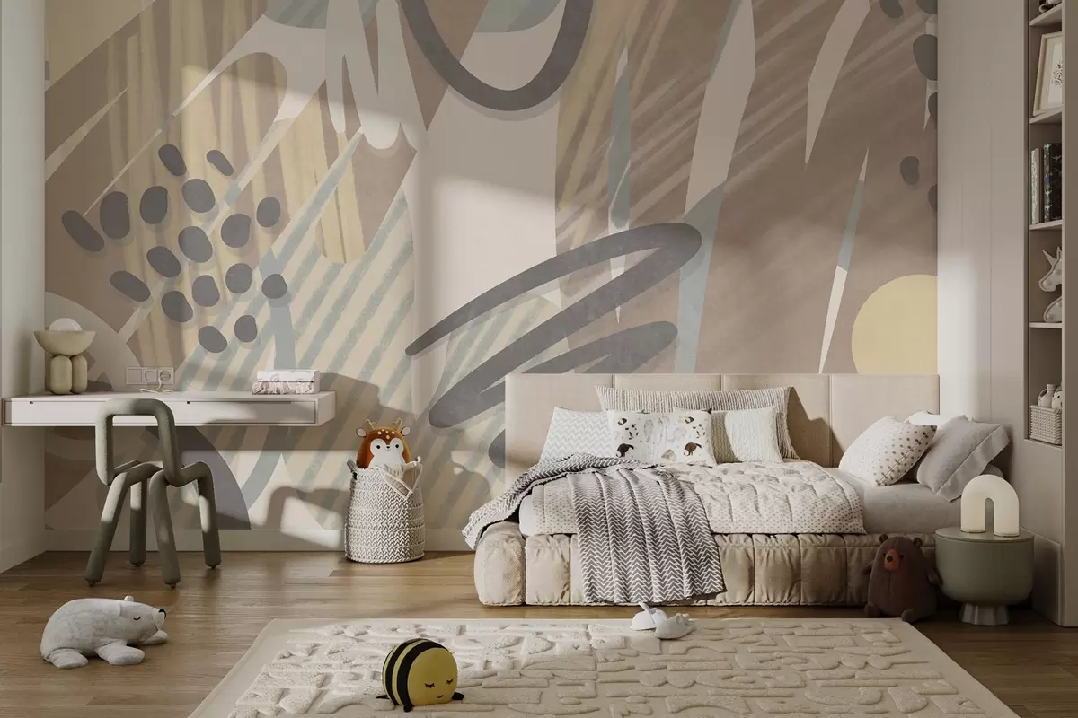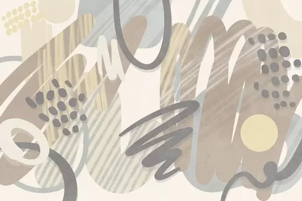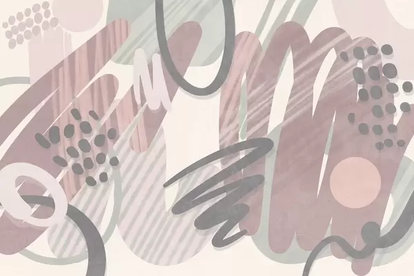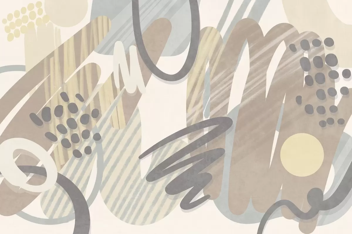 Fototapety Abstraktní texturovaný vzor s organickými tvary, čmáranicemi a tečkami v tlumených pastelových barvách Č. w09774