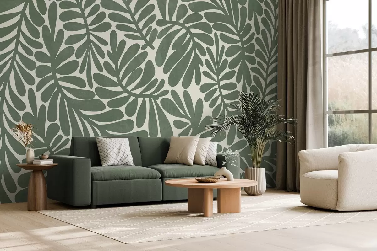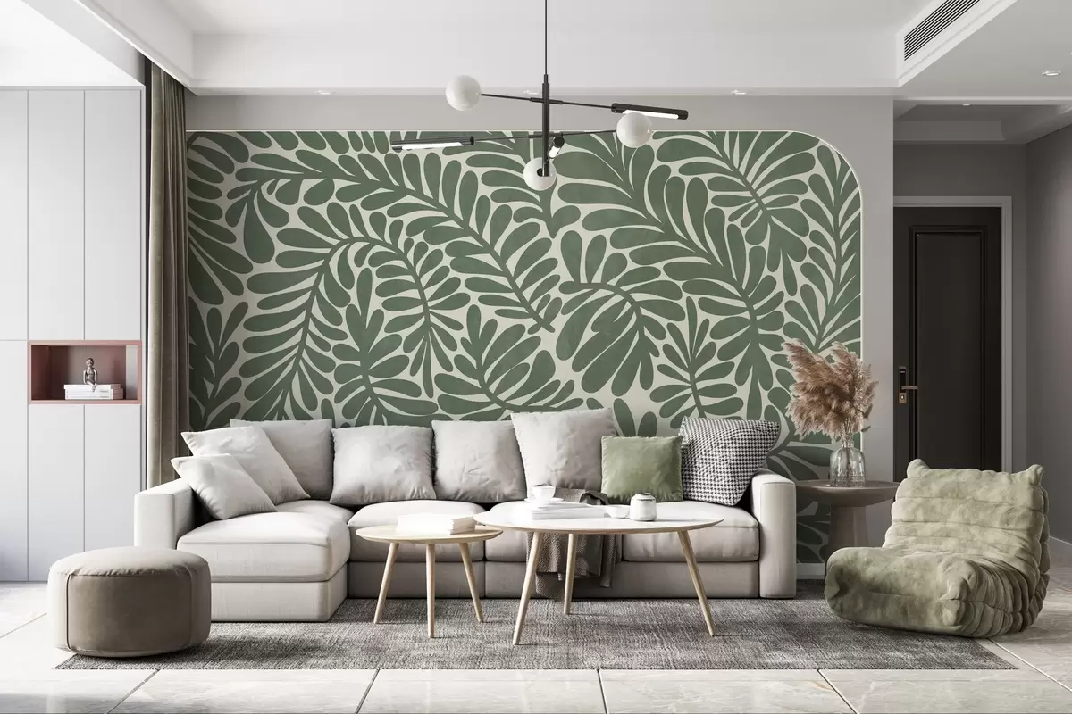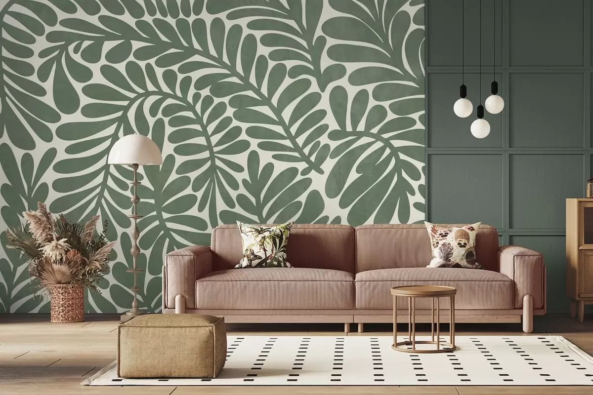 Fototapety Stylizované zelené listy na světlém pozadí, texturovaná grafika Č. w09775v2