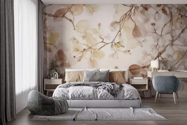 Fototapety Vzdušné visící větve v béžových odstínech ve stylu akvarelu Č. w09795
