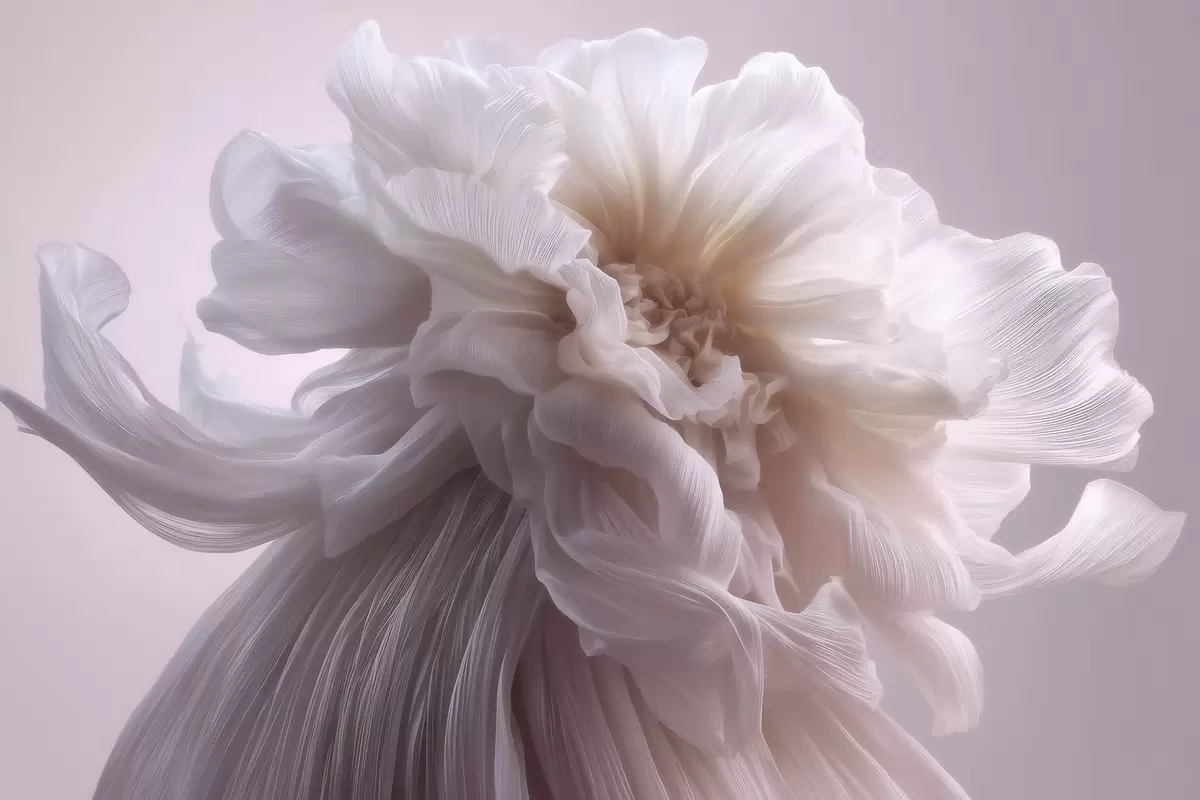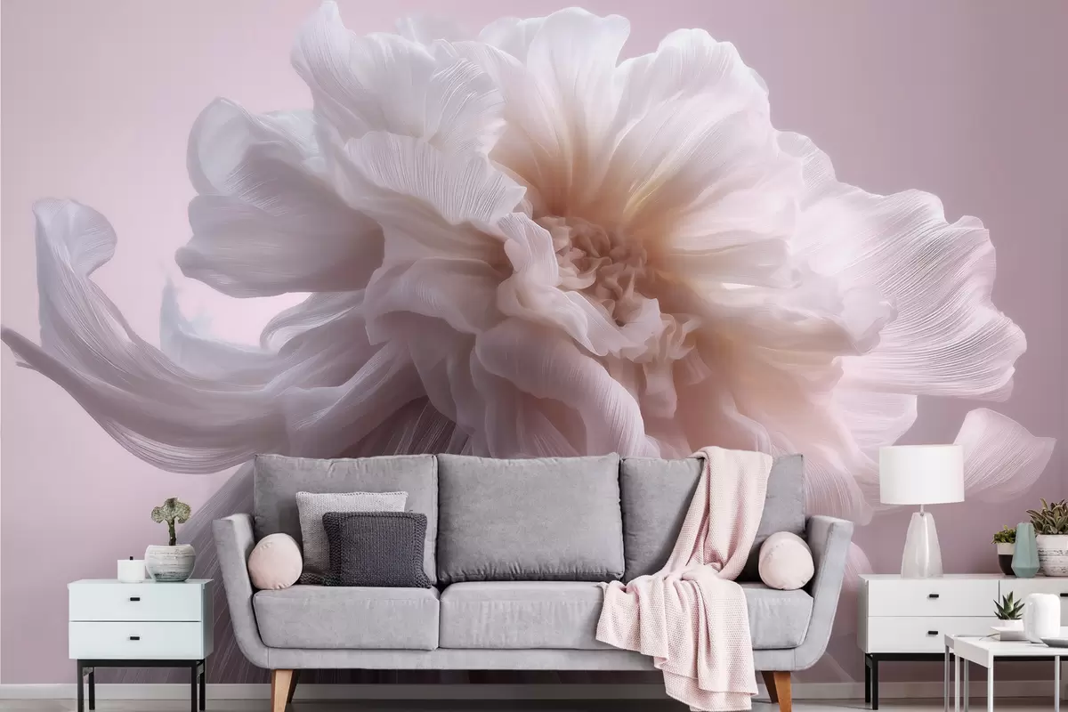 Fototapety Objemná hedvábná květina v jemných růžových a béžových odstínech Č. w09809