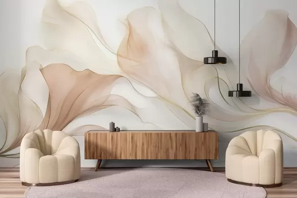 Fototapet Abstraktní vlnící se vzor v odstínech broskvové a krémové barvy s jemnými linkami w09815