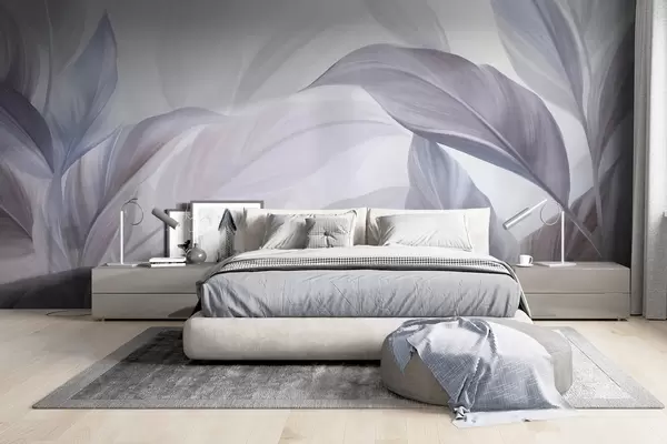 Fototapety Velké tropické listy v bledě modré a fialové barvě s jemnými pastelovými odstíny a strukturovaným vzorem Č. w09816v1