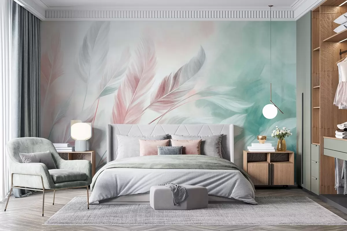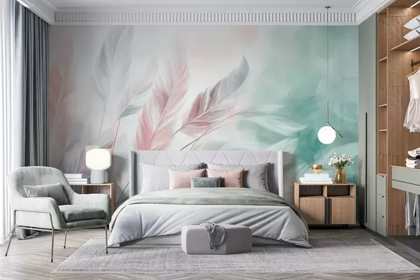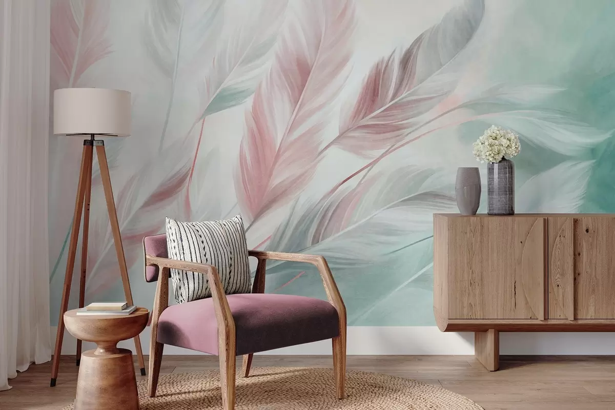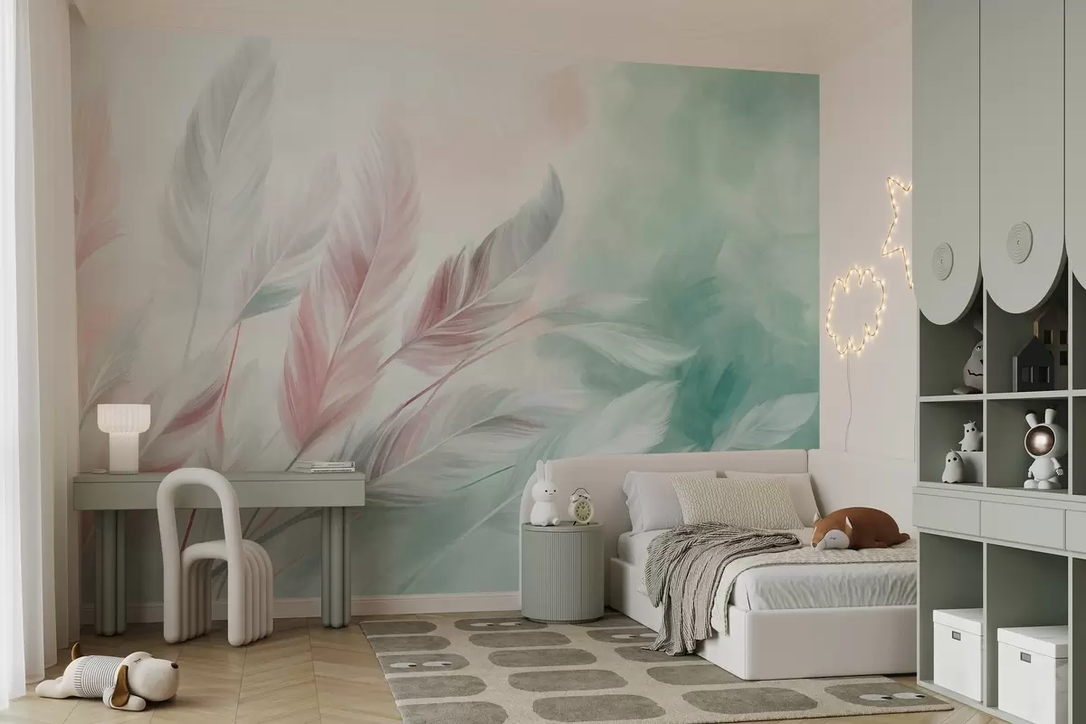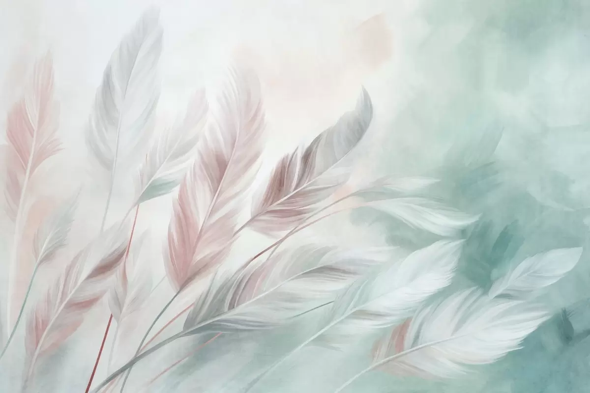 Fototapety Strukturovaná pastelová peříčka s jemnými, rozcuchanými okraji na pozadí ve stylu akvarelu Č. w09833v1