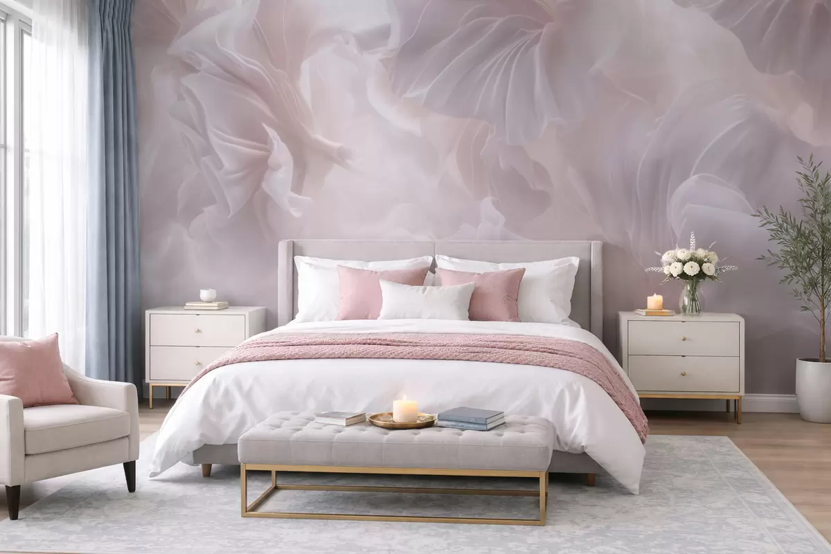 Fototapety Abstraktní květinové motivy s vlnícími se okvětními lístky v pastelových odstínech Č. w09841