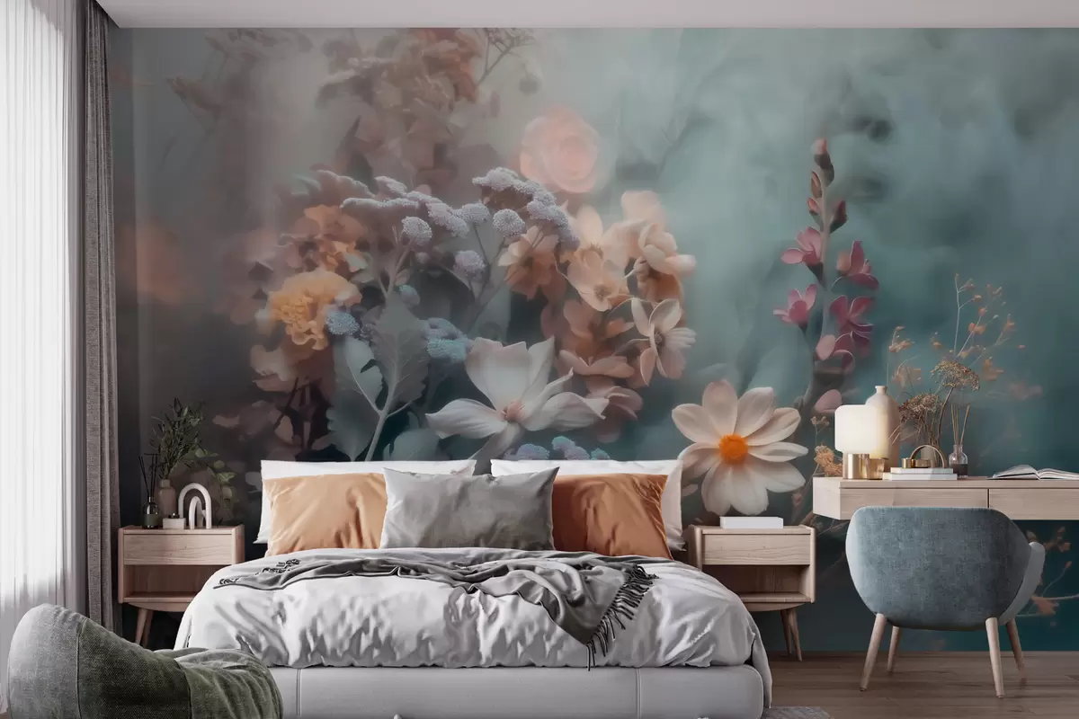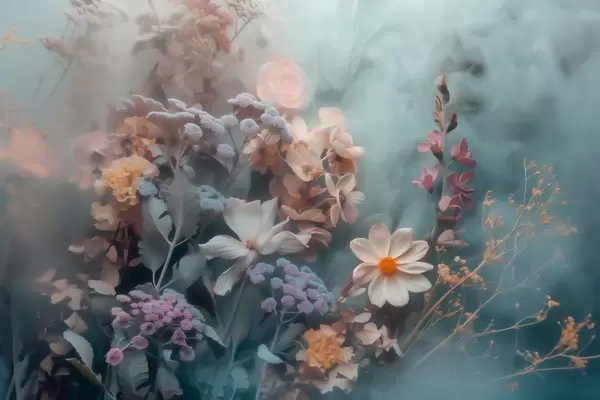 Fototapety Snová kompozice polních květin v jemné hmle pastelových odstínů Č. w09846