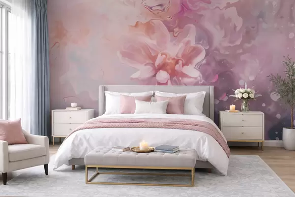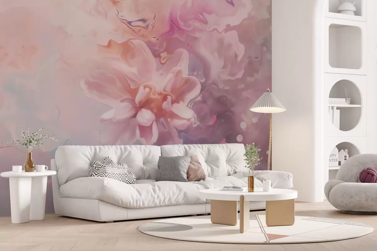 Fototapety Abstraktní kompozice s květinou a jemnými růžovými přechody ve stylu akvarelu Č. w09859