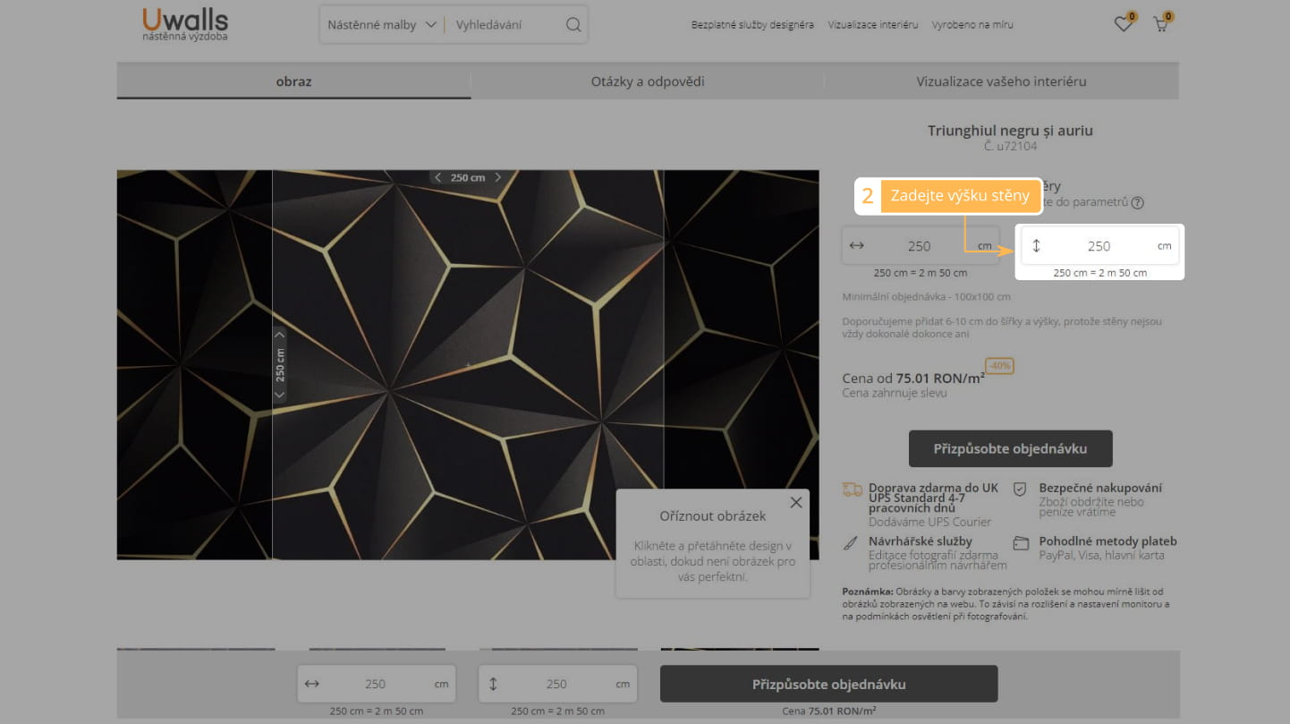 2. Zadejte výšku stěny