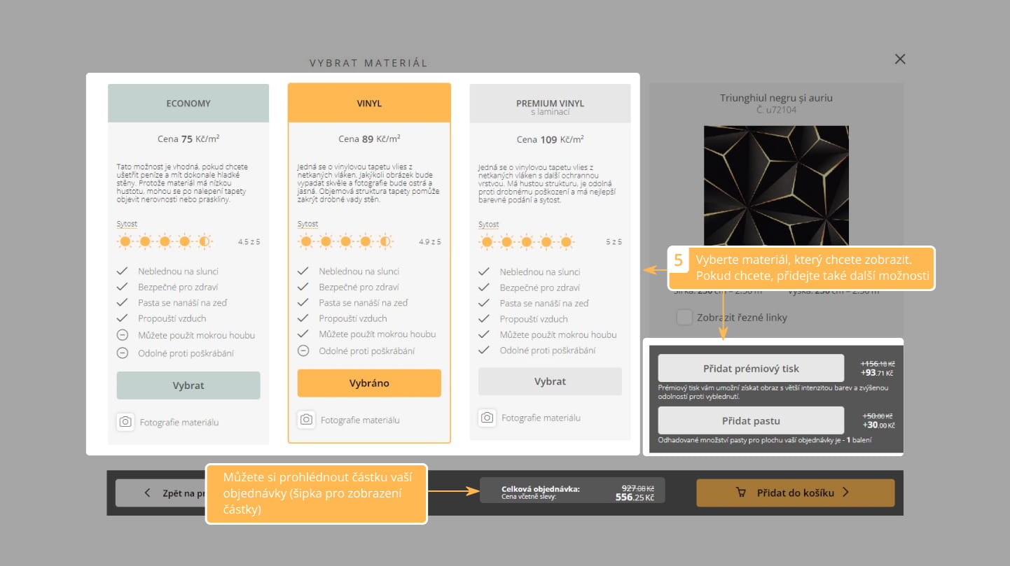 5. Vyberte materiál, který chcete zobrazit. Pokud chcete, přidejte také další možnosti