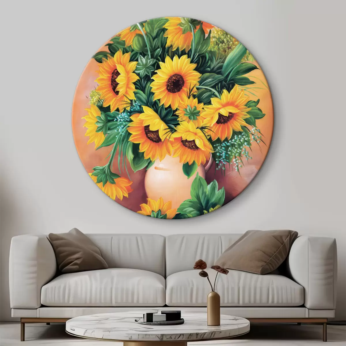 Kulaté obrazy Slunečnice ve váze r00860