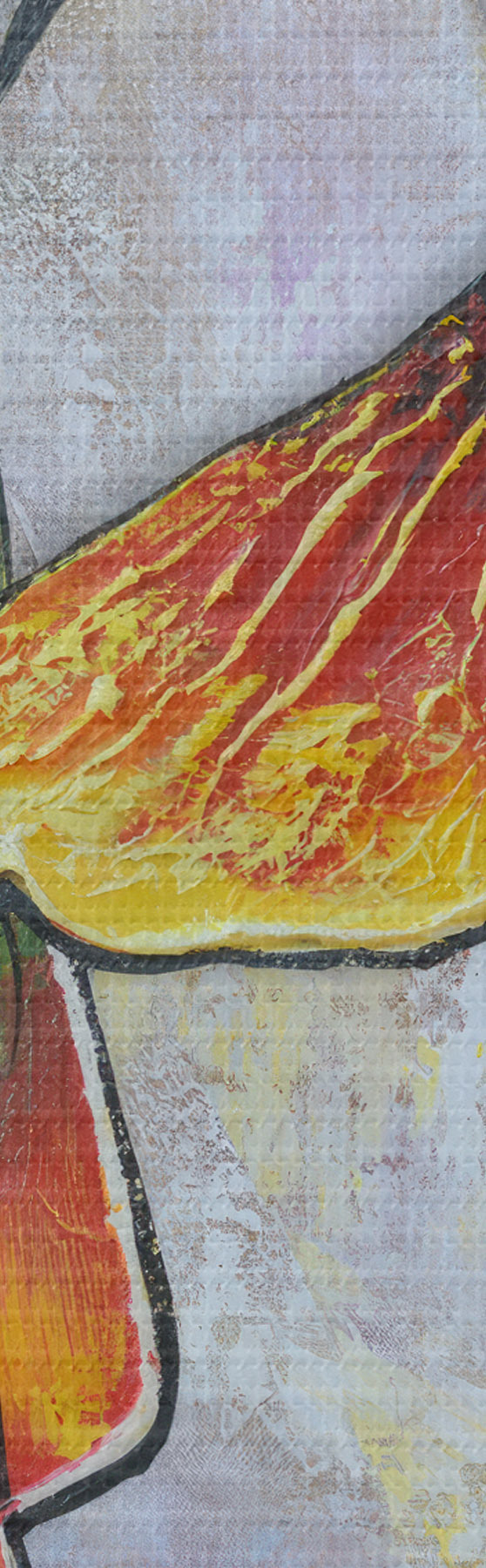 K napnutí plátna na nosítka bez poškození obrazu používáme zrcadlový obraz.