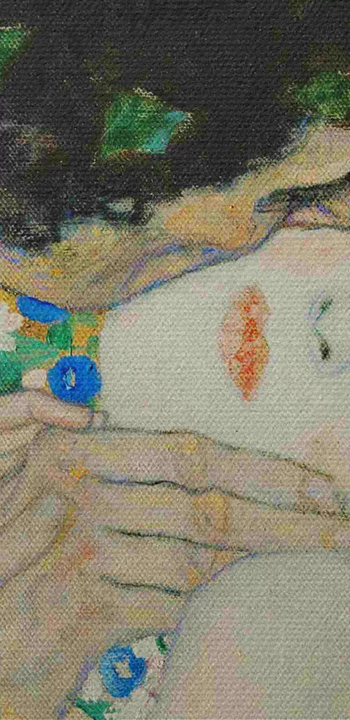 Obraz lze jemně otřít suchým měkkým hadříkem nebo houbičkou; nedoporučuje se používat mokré prostředky. Použití vlhké houbičky je povoleno pouze v případě, že byl obraz lakován.