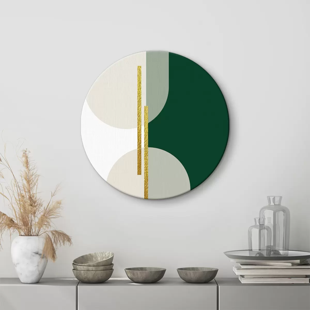 Obrázek Abstraktní nástěnná grafika v béžové a zelené barvě Nr r35943