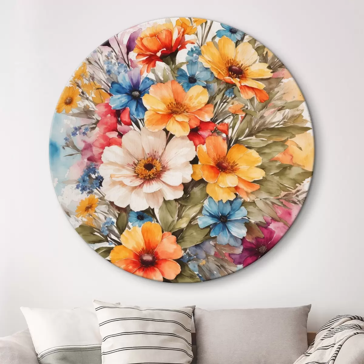 Obrázek Akvarelová kytice růžových, žlutých, modrých a červených květů Nr r36121