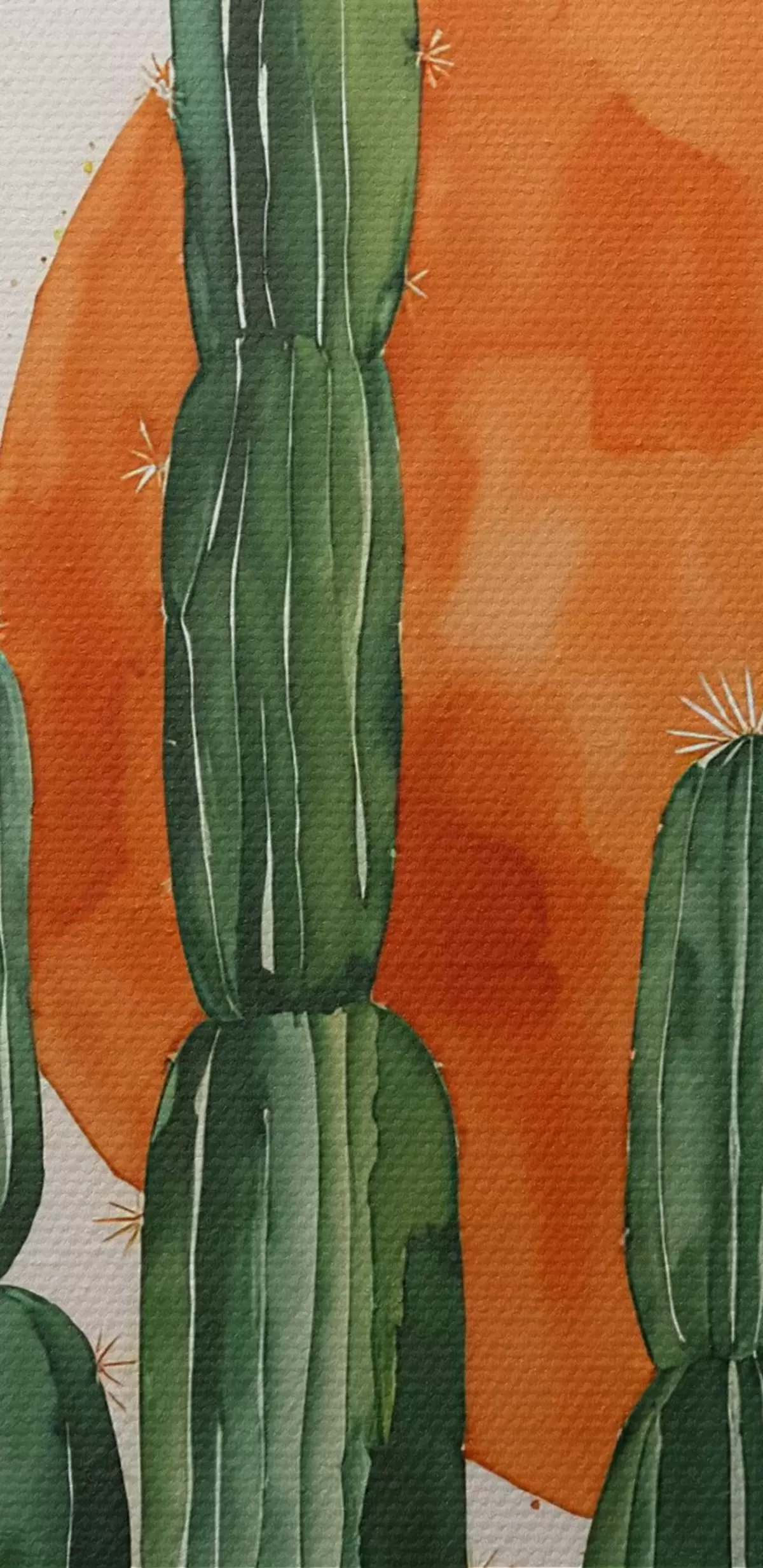 Obrázek Kaktus v poušti na pozadí slunce v akvarelu Nr r36269