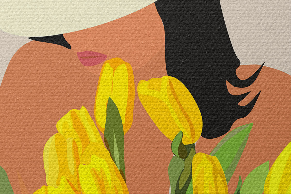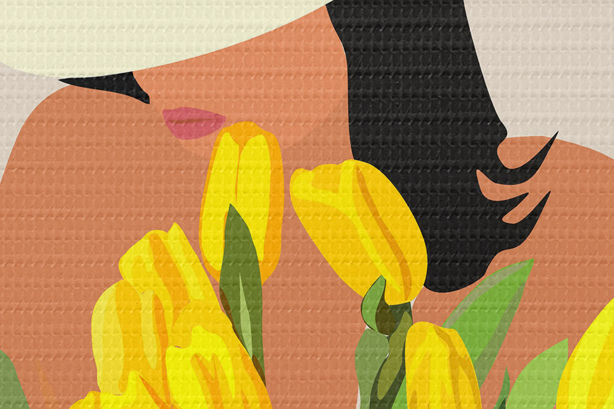 Obrázek Dívka se žlutými květy abstraktní boho styl Nr r36336