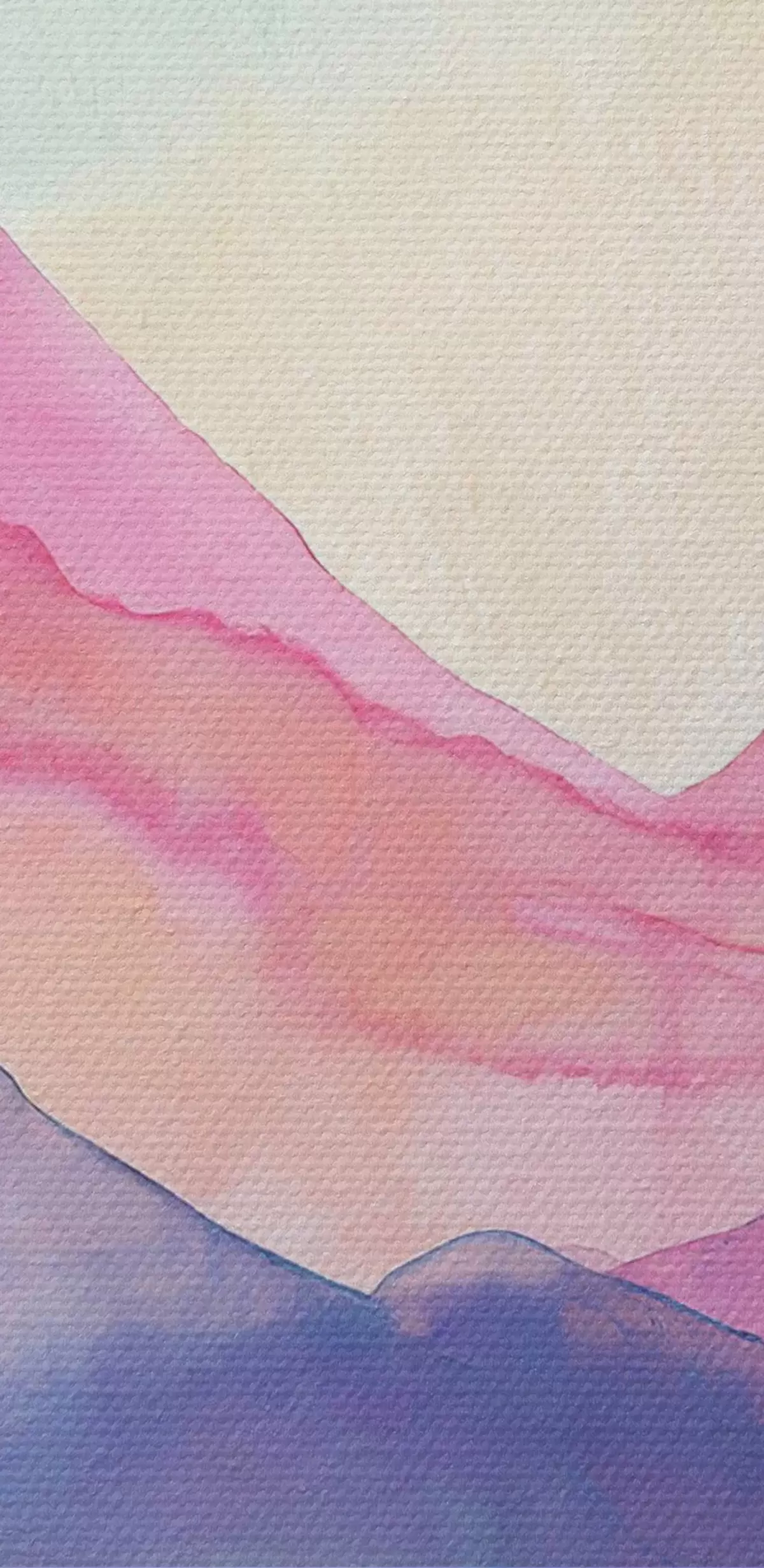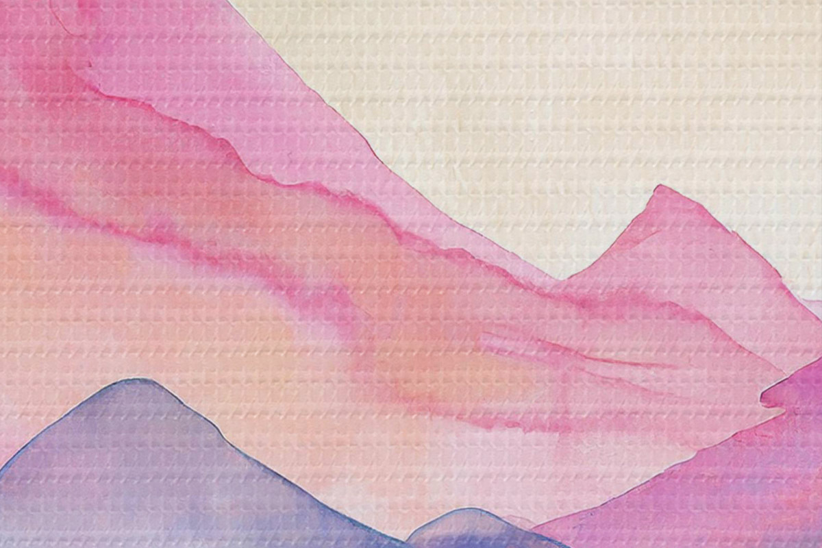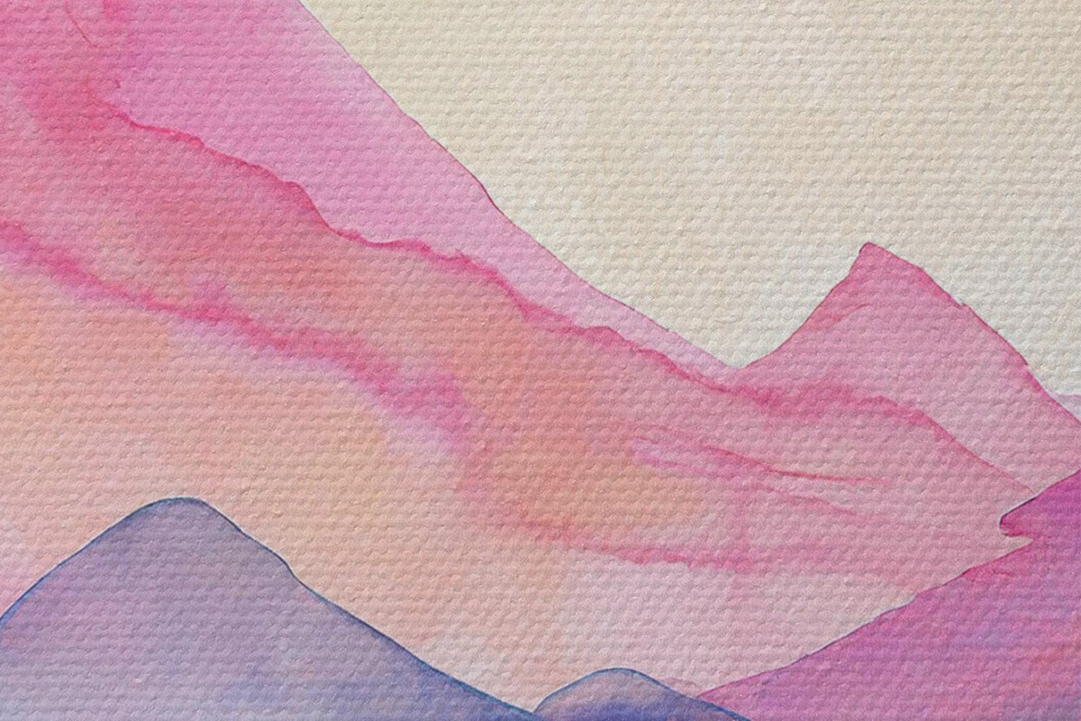 Obrázek Akvarel Horská krajina, východ slunce, jemné fialové, růžové a modré barvy Nr r36496