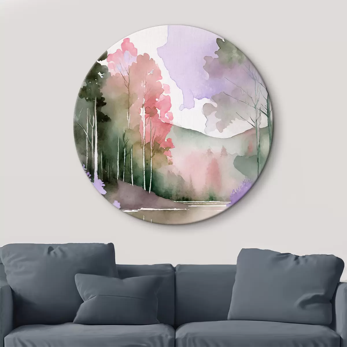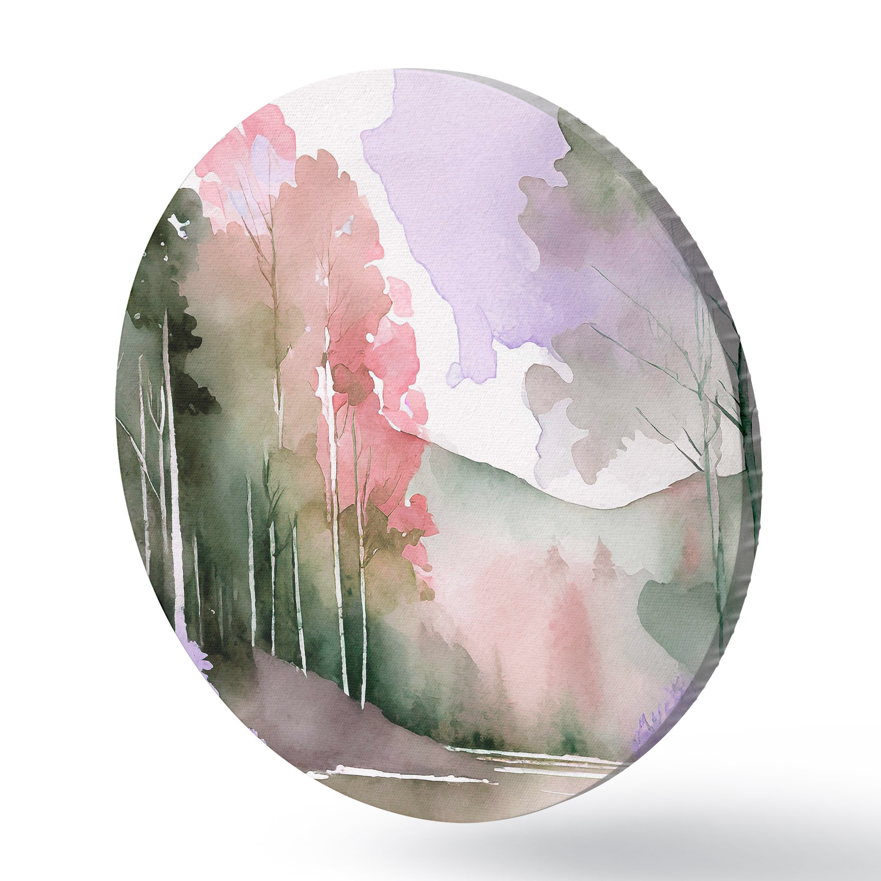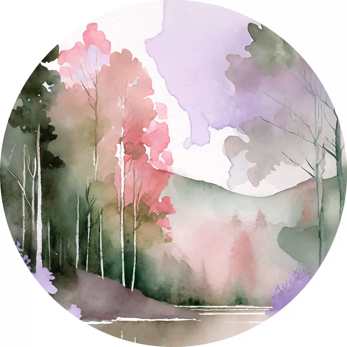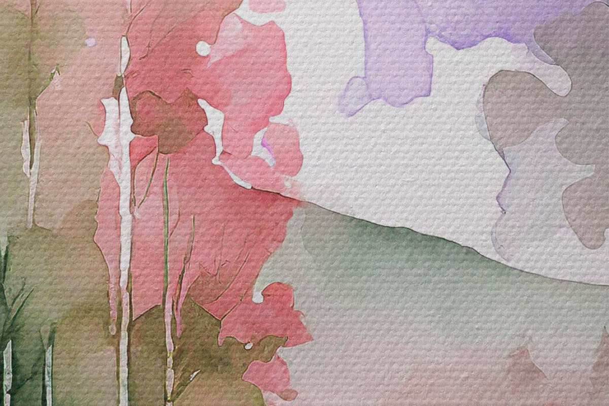 Obrázek Akvarel Jezero a lesní krajina, jaro, jemné přírodní barvy Nr r36501