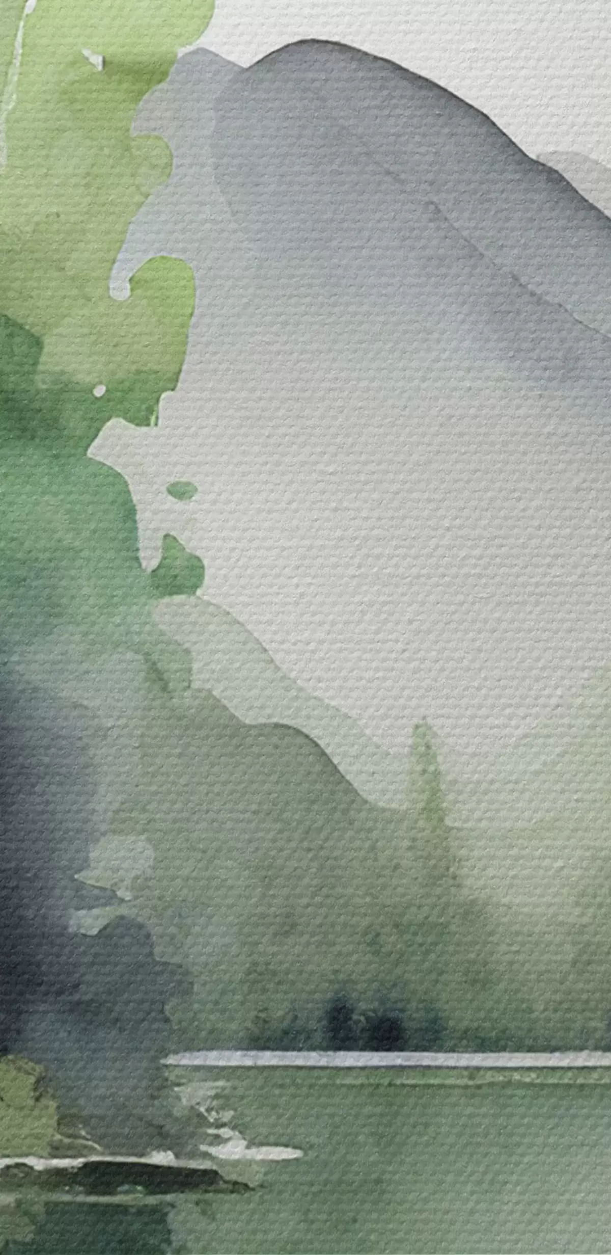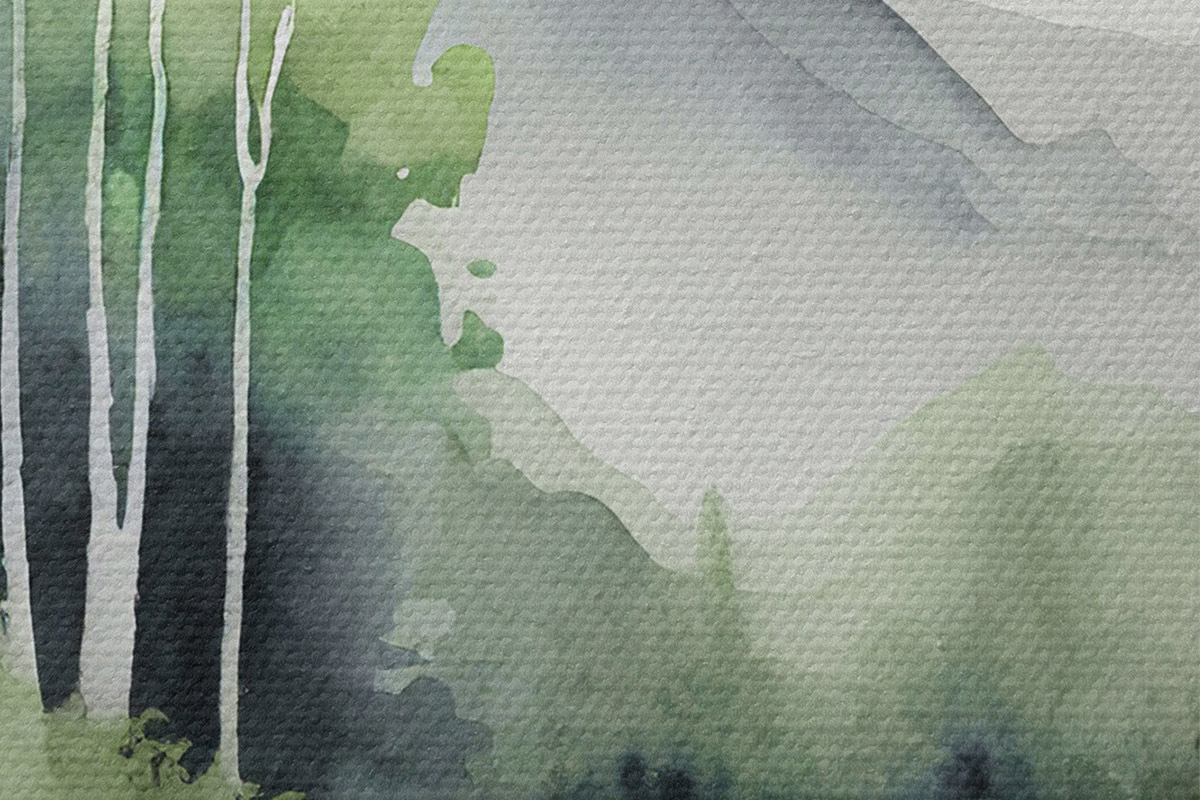 Obrázek Akvarelová krajina jezera a lesa, jaro, přírodní zelené jemné barvy Nr r36503