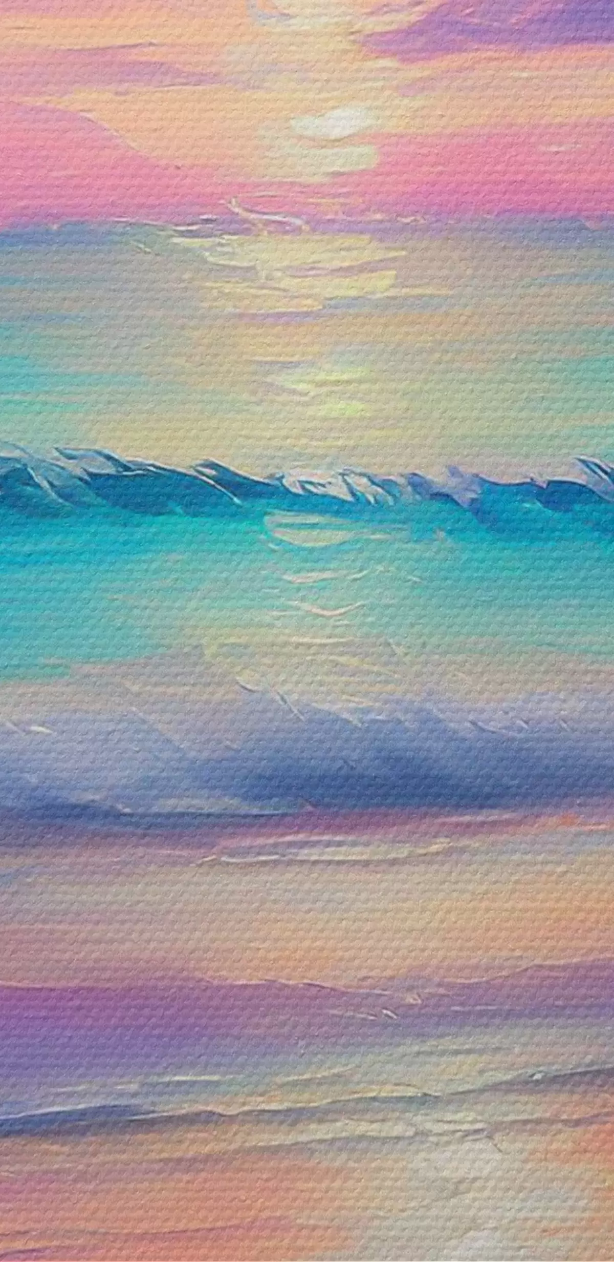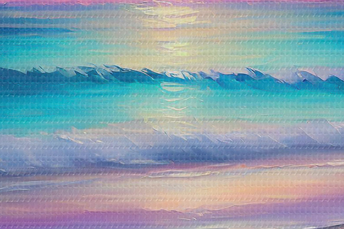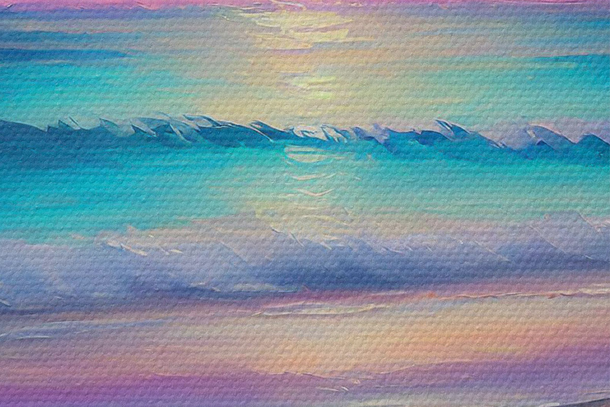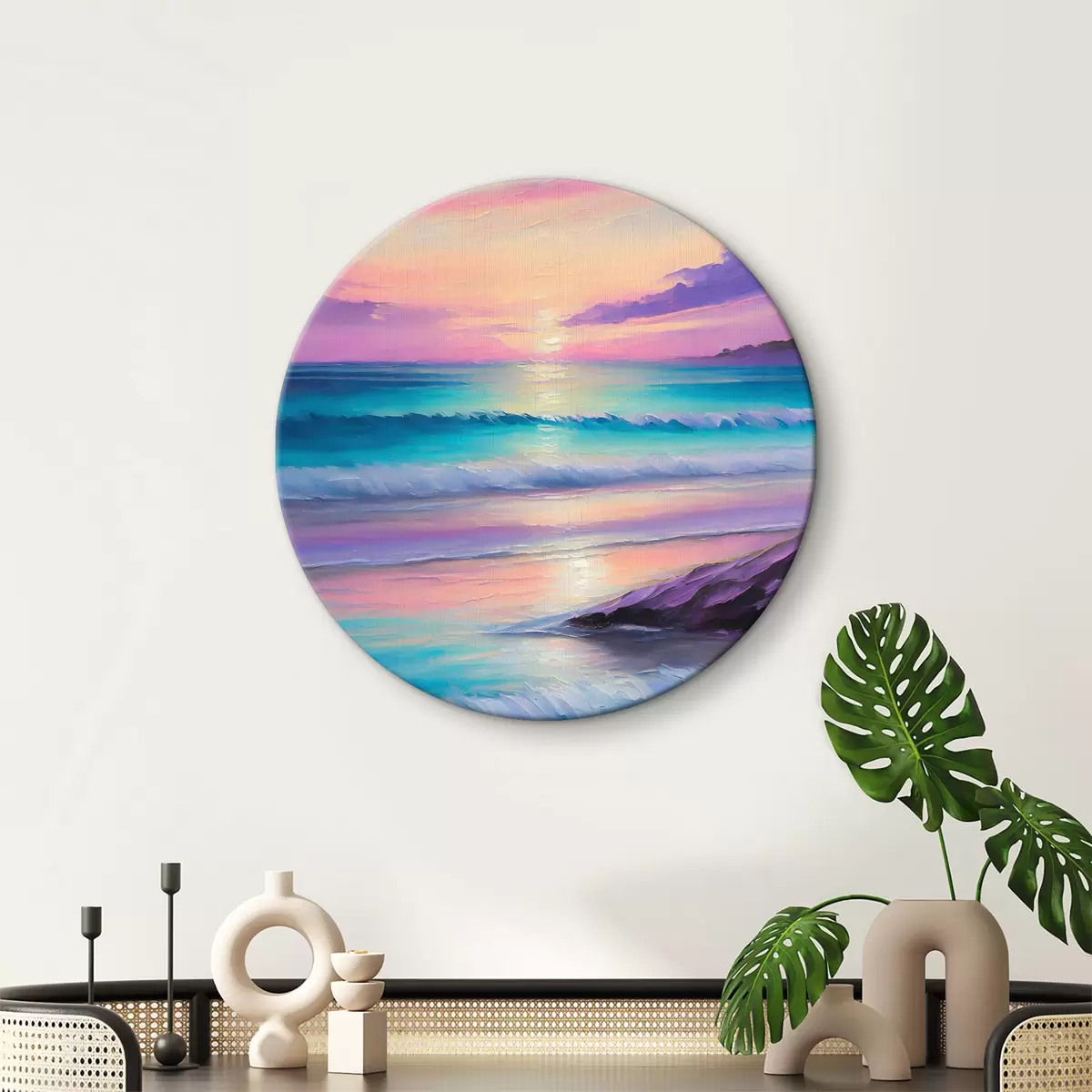 Obrázek Jemný fialový západ slunce na mořském pobřeží, akrylová kresba, útulná plážová atmosféra Nr r36590