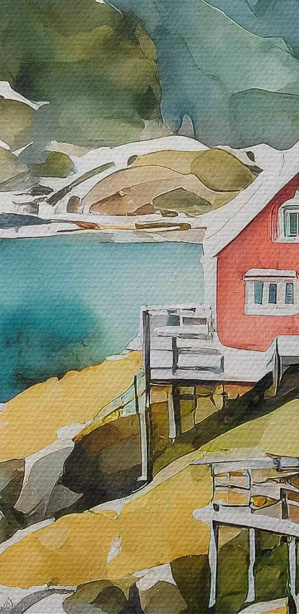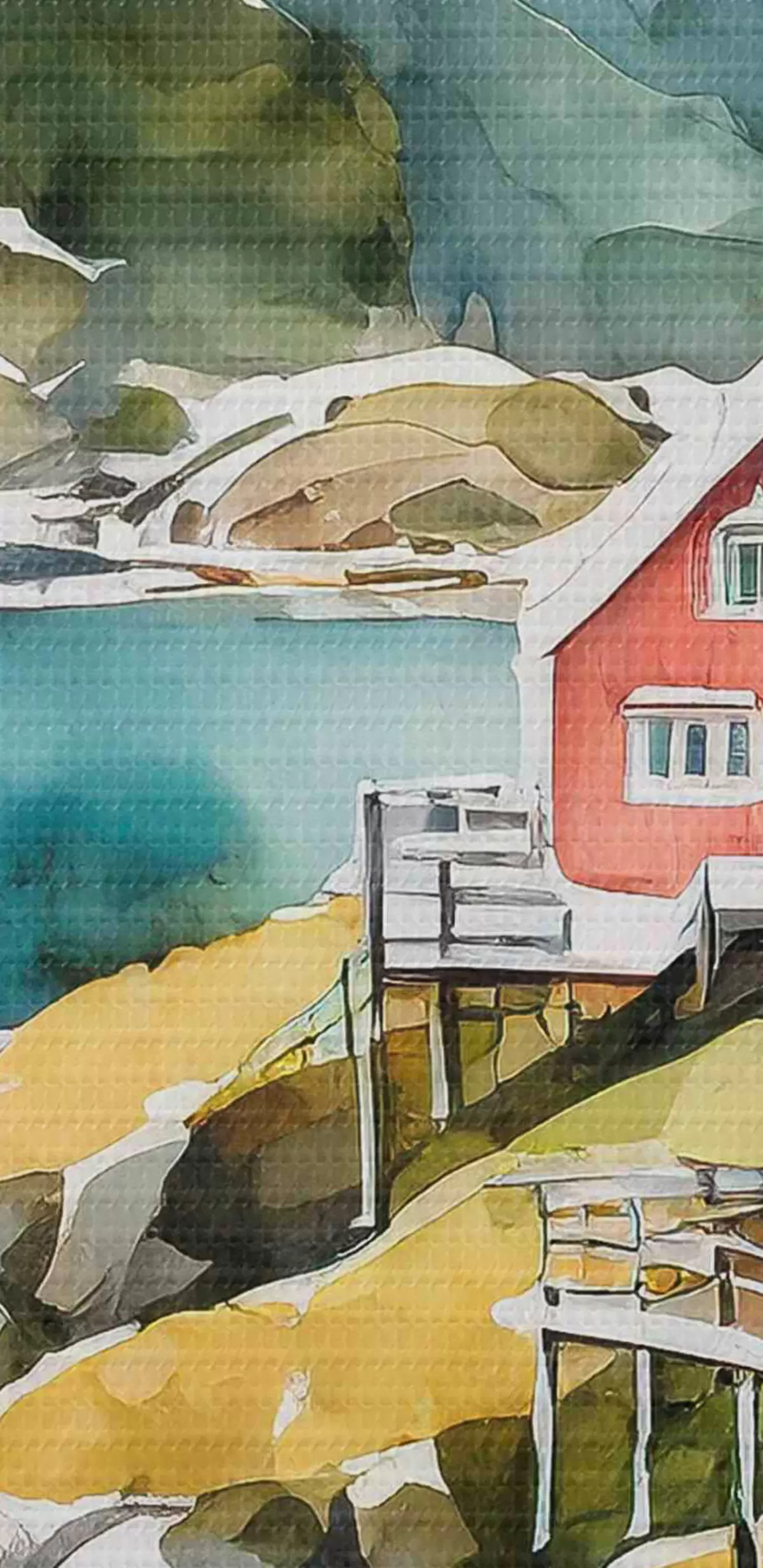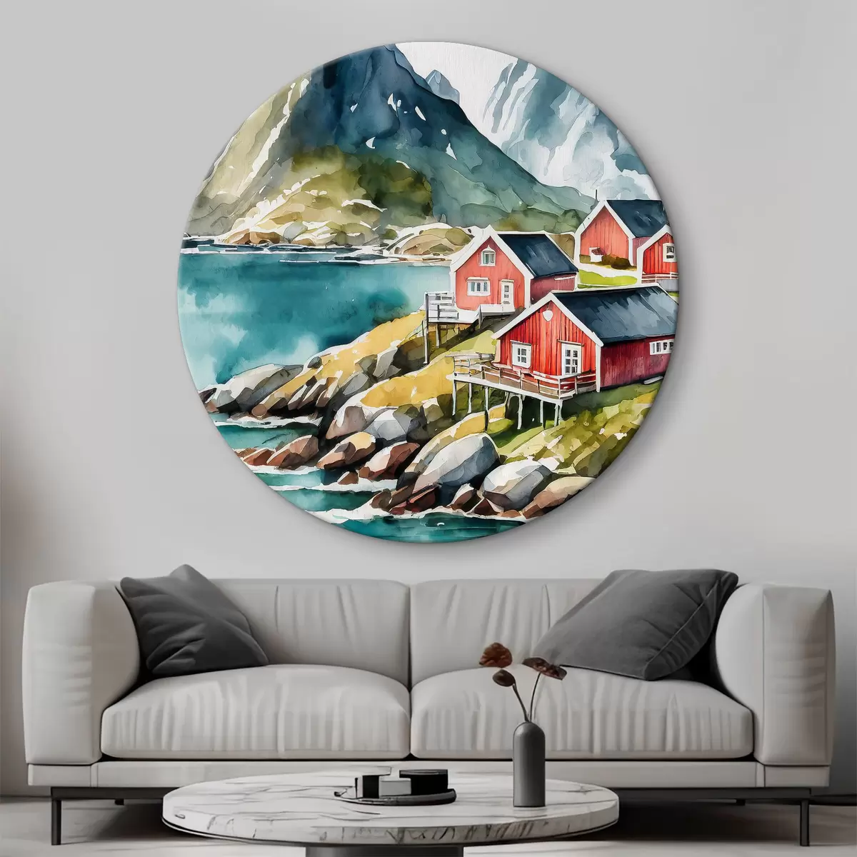 Obrázek Akvarel domů na kopci u přehrady Nr r36678