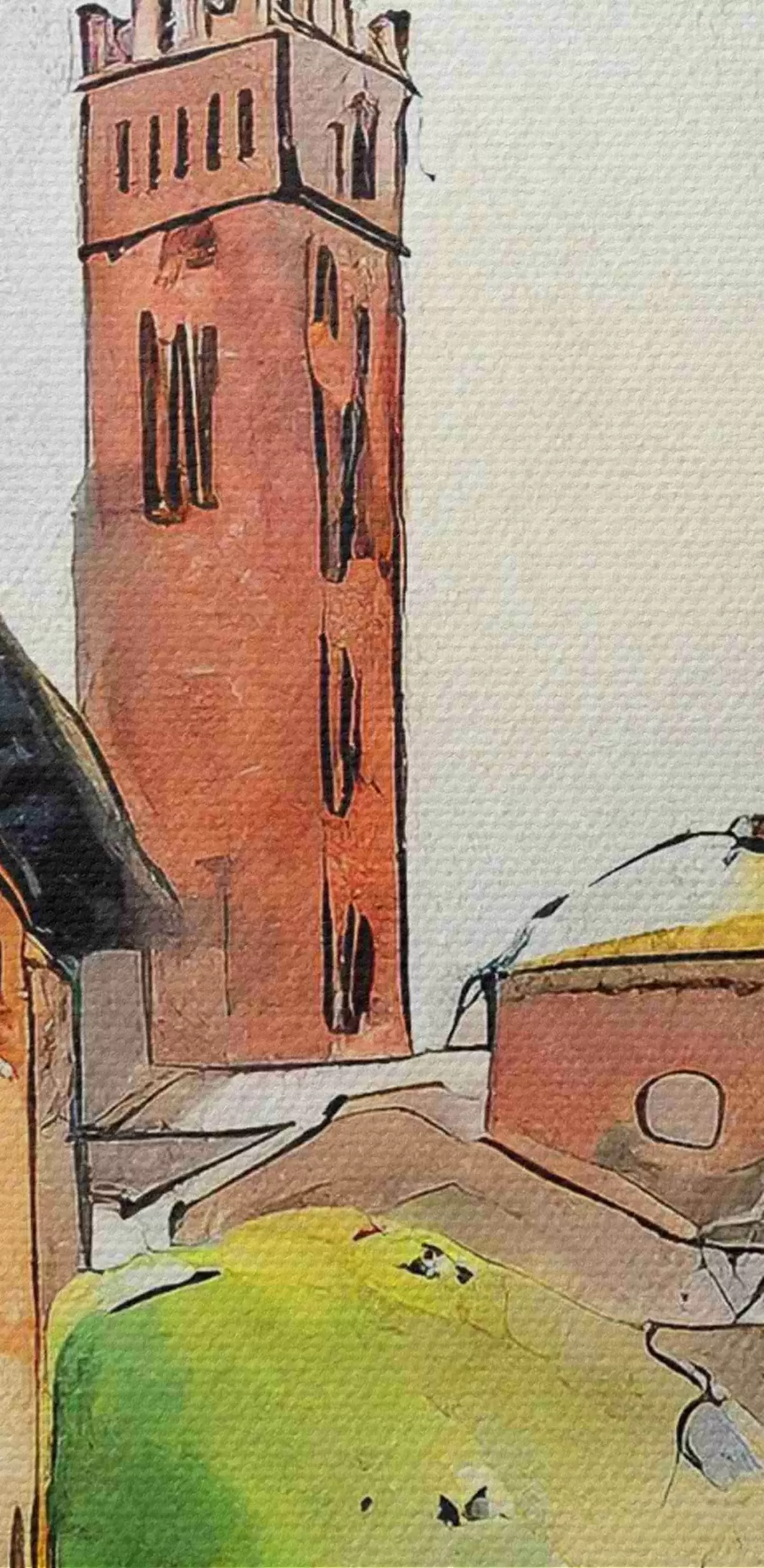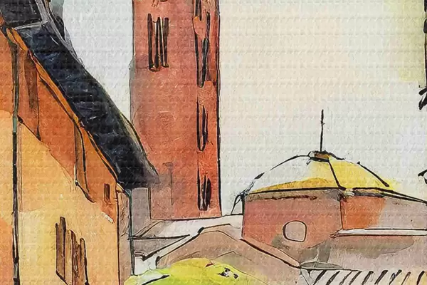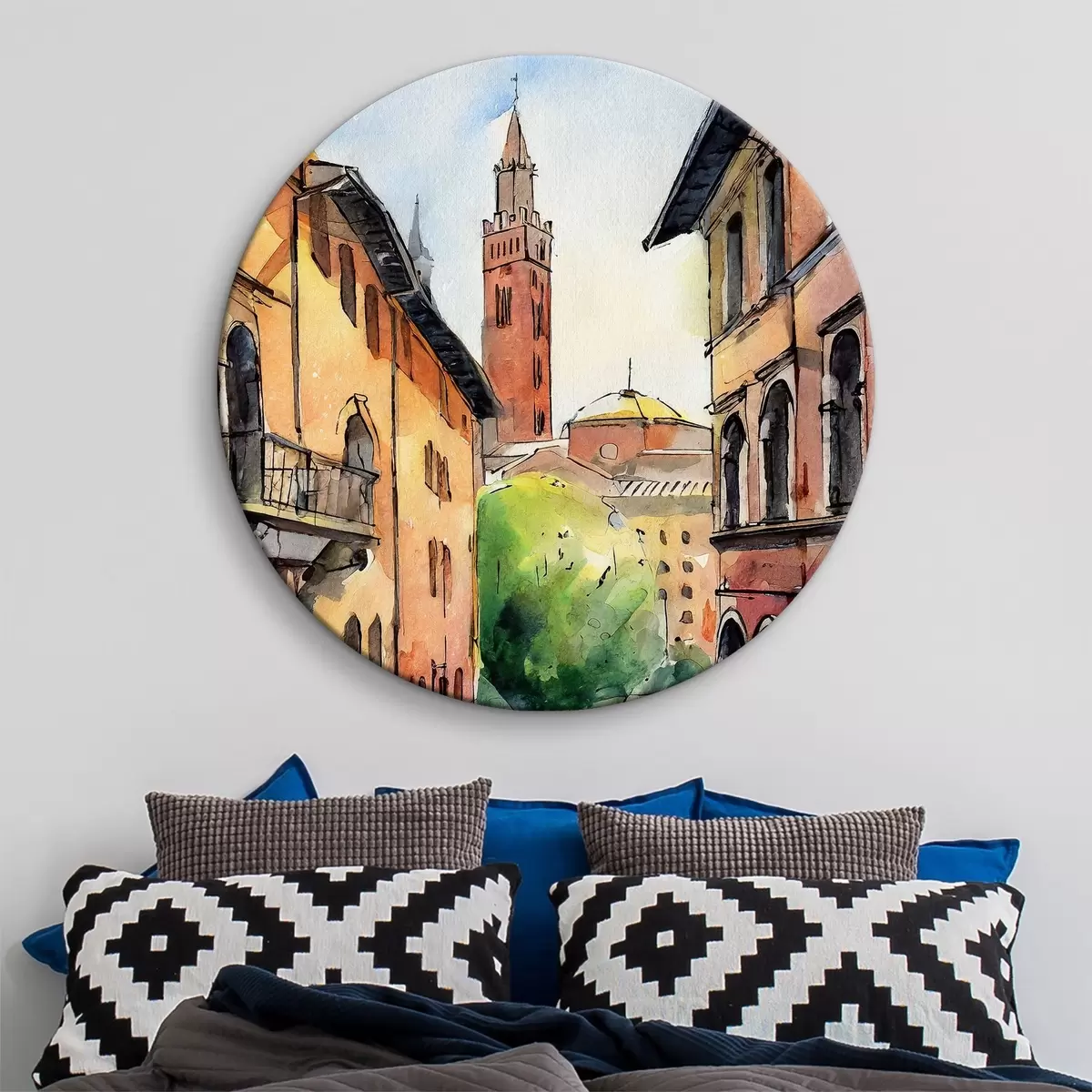 Obrázek Akvarelová malba ulice s budovami a stromy Nr r36684