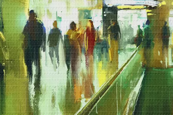 Obrázek Skupina lidí jdoucí po eskalátoru Nr r37103