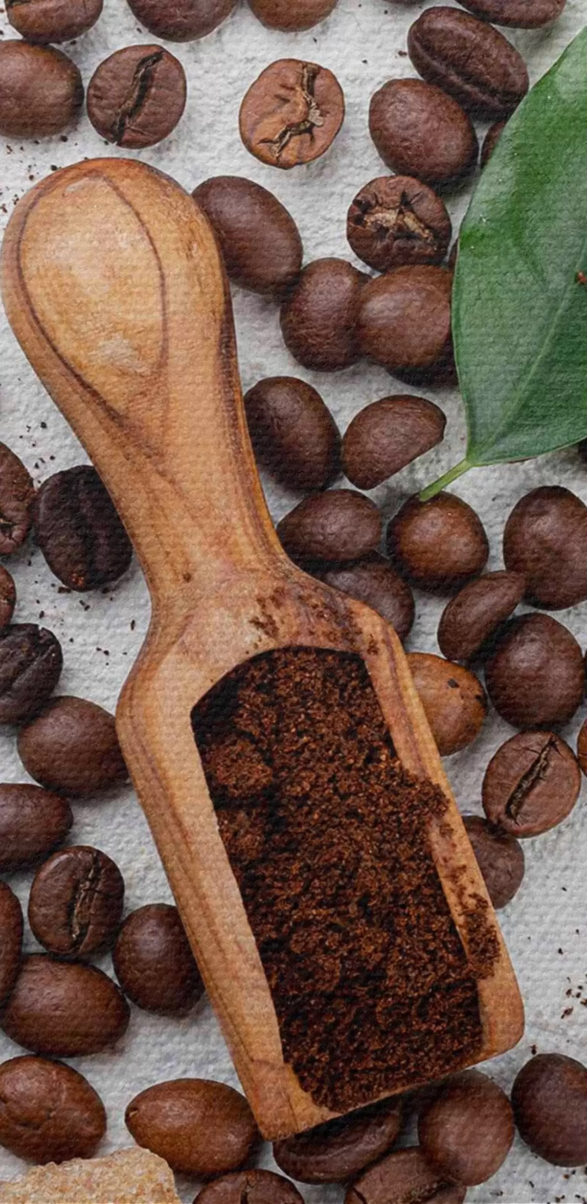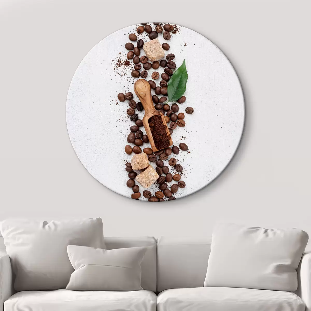 Obrázek Lžička se zrnkovou kávou a cukrem na povrchu Nr r37178