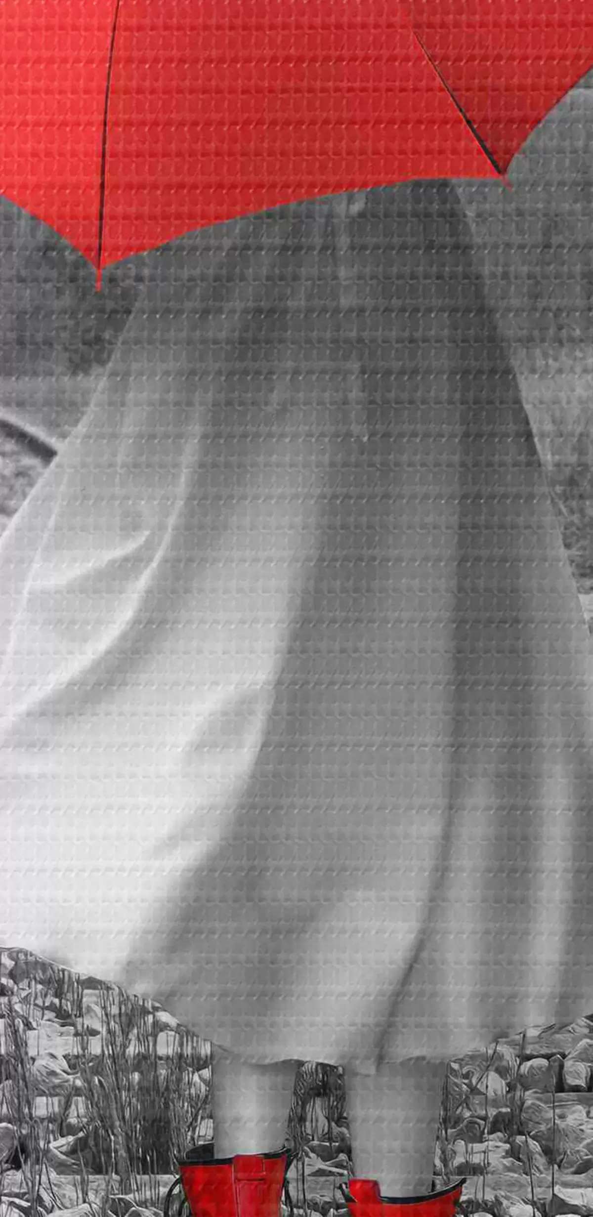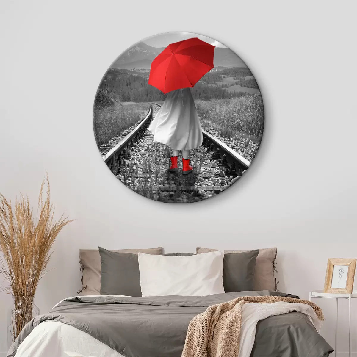 Obrázek Osoba s červeným deštníkem na železničních kolejích Nr r37301