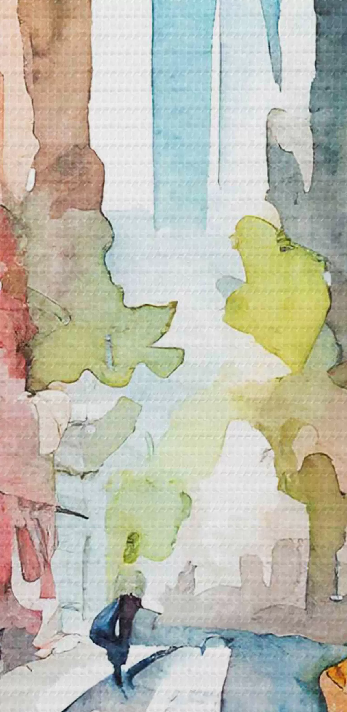 Obrázek Akvarel zachycující ulici s budovami a vysokou věží v pozadí Nr r37346