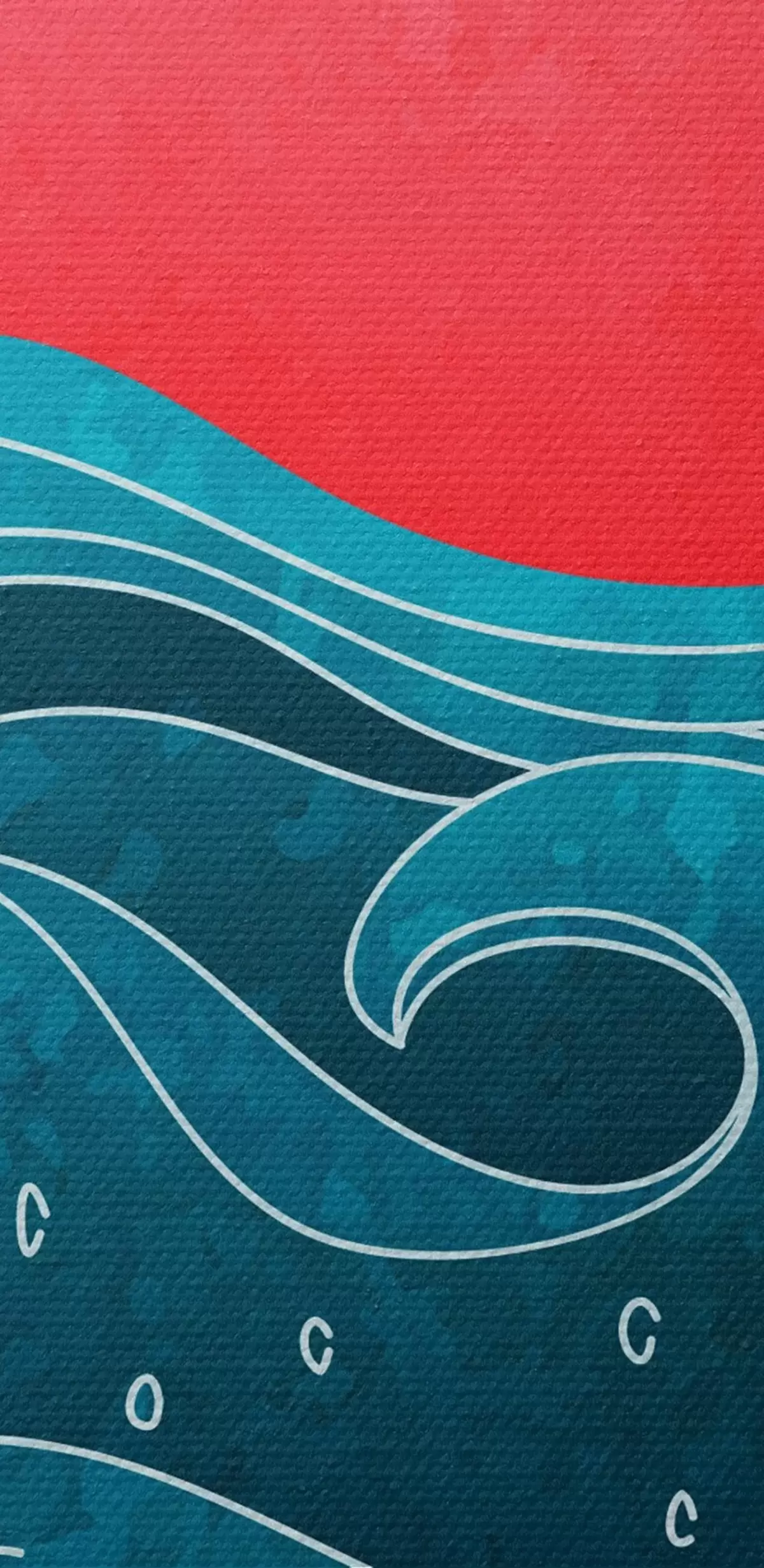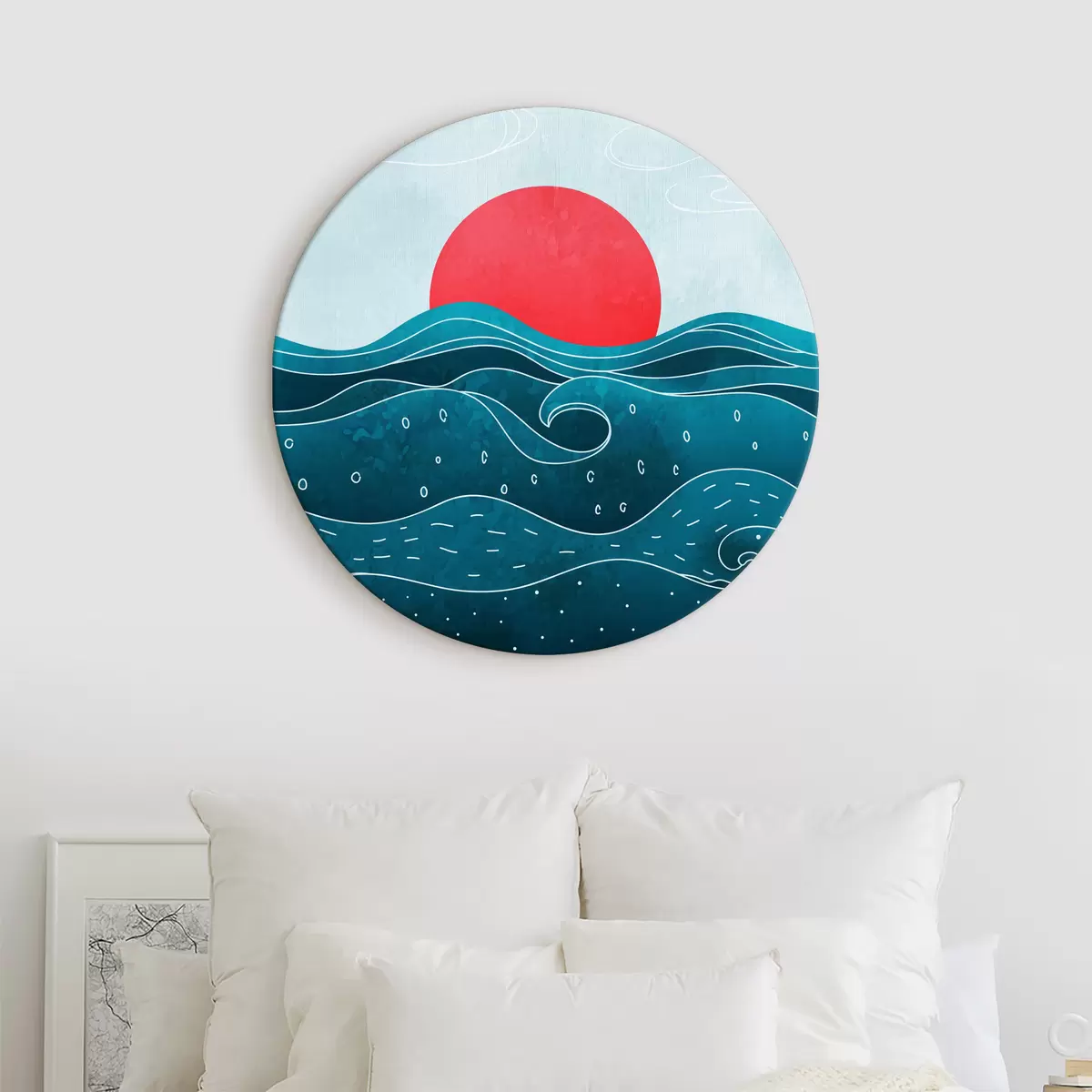 Obrázek Voda s vlnami a červeným sluncem Nr r37640