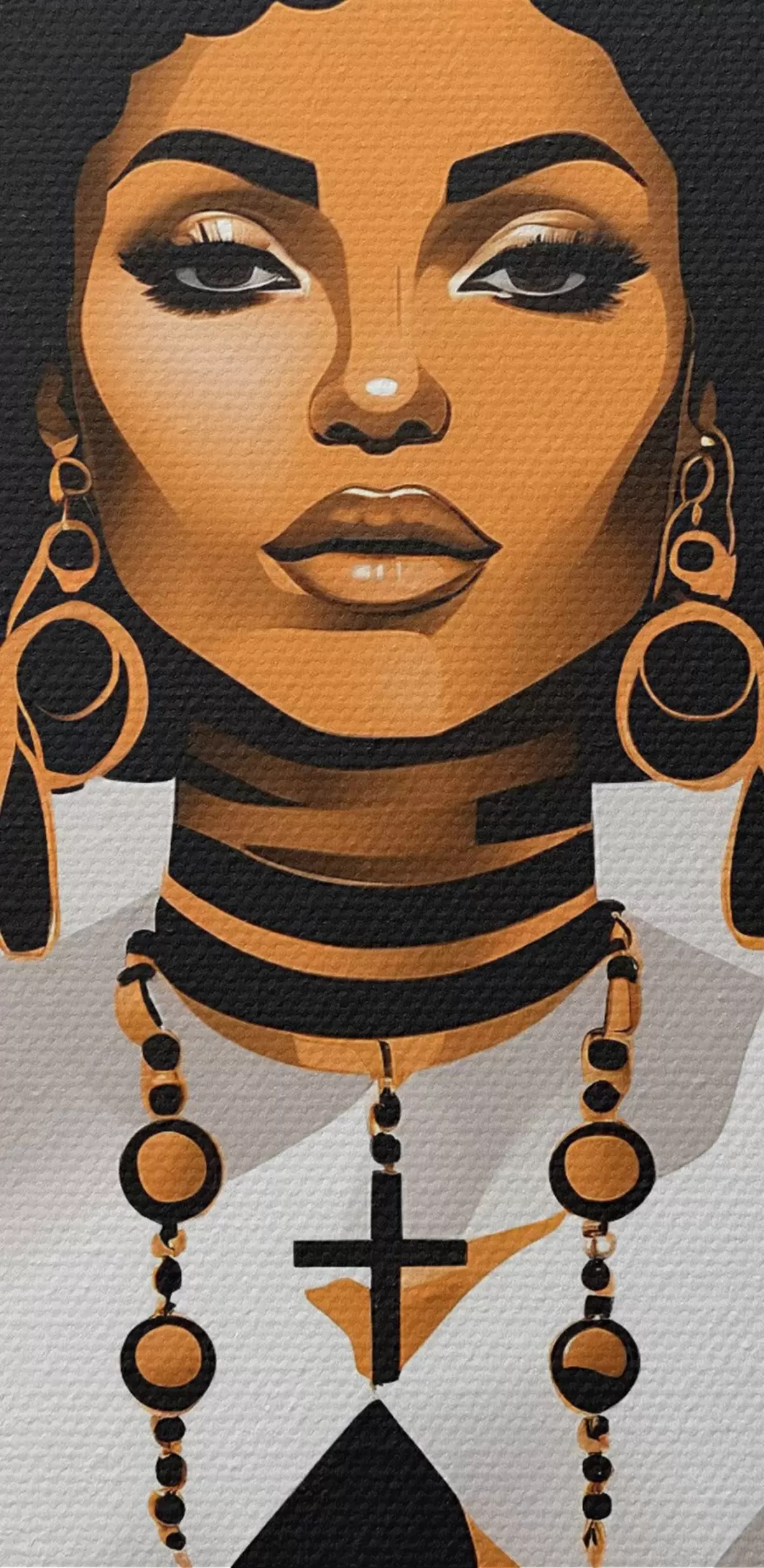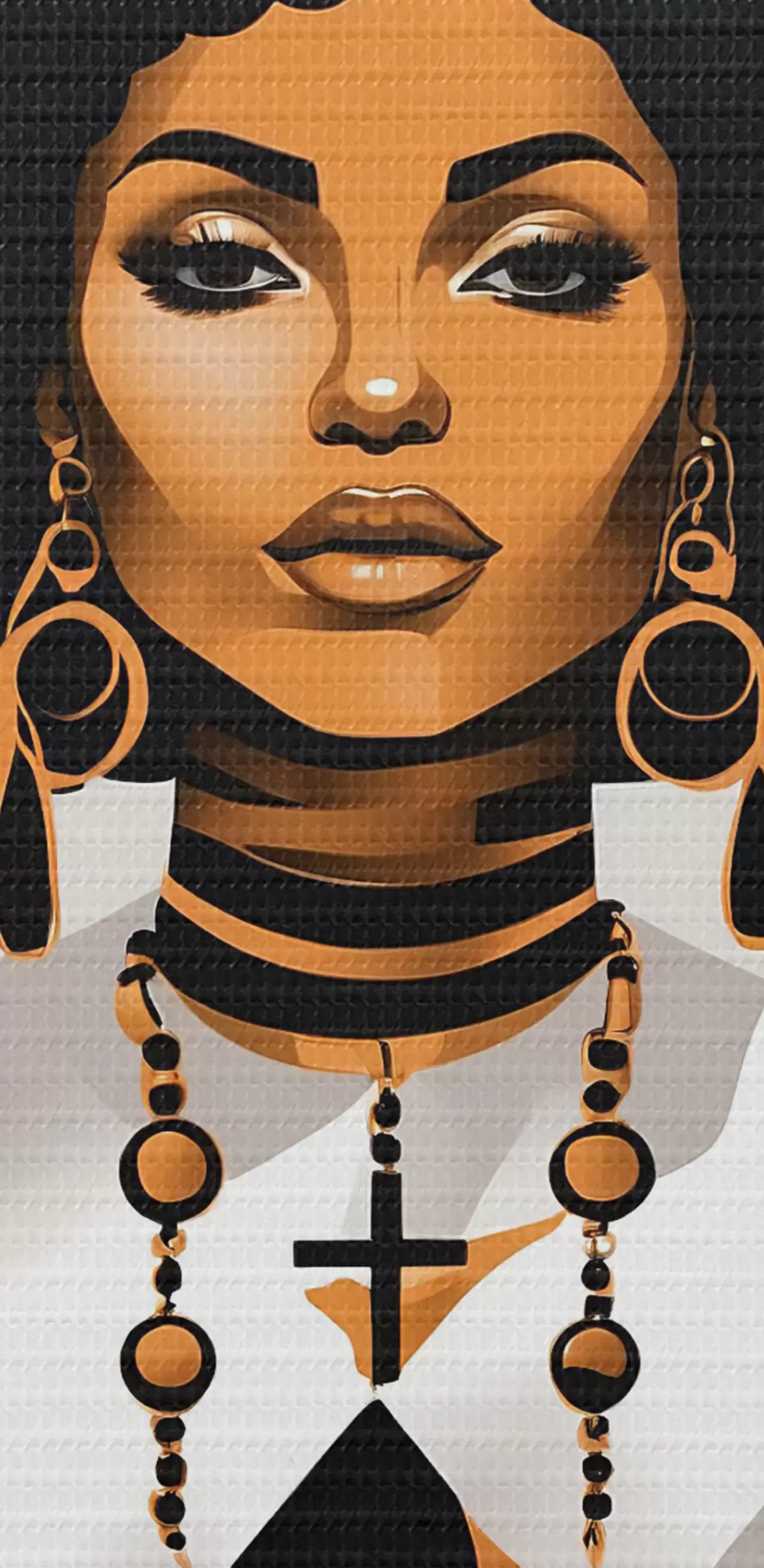 Obrázek Žena s velkým afrem v bílé košili a náušnicemi Nr r37793