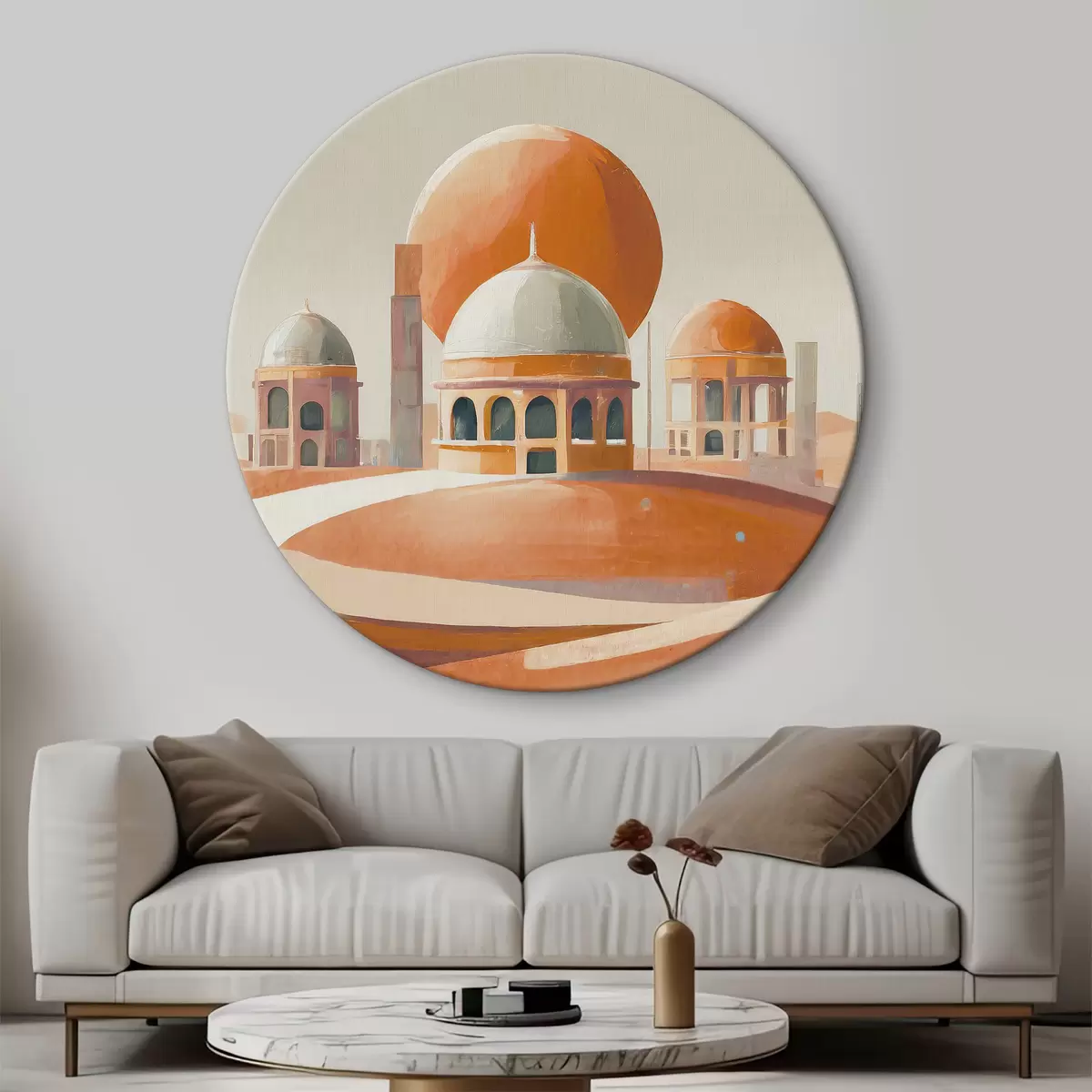 Obrázek Pouštní krajina s budovami a velkou oranžovou koulí Nr r37812