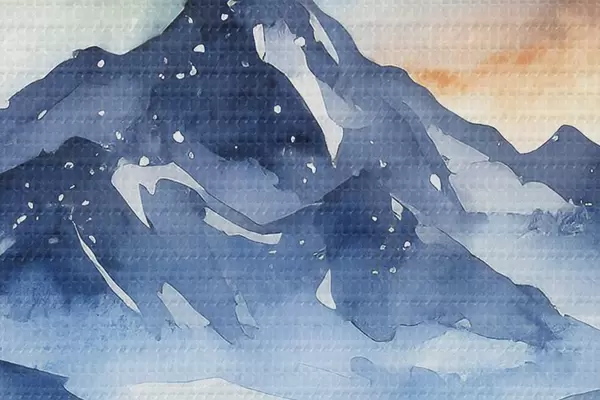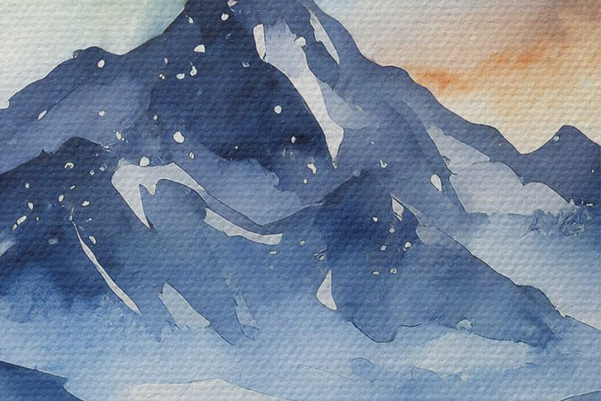 Obrázek Akvarel horská krajina, les, hvězdná noční obloha, barvy západu slunce Nr r37946