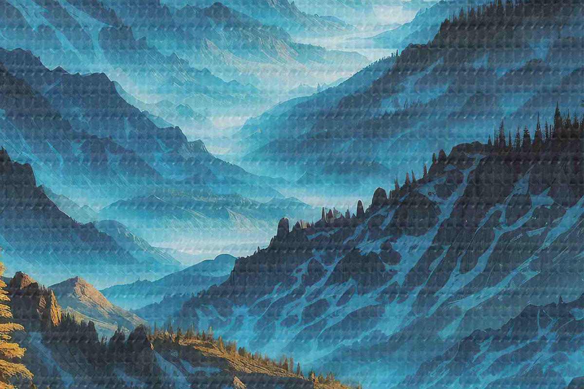Obrázek Pohoří se stromy a řekou Nr r38134