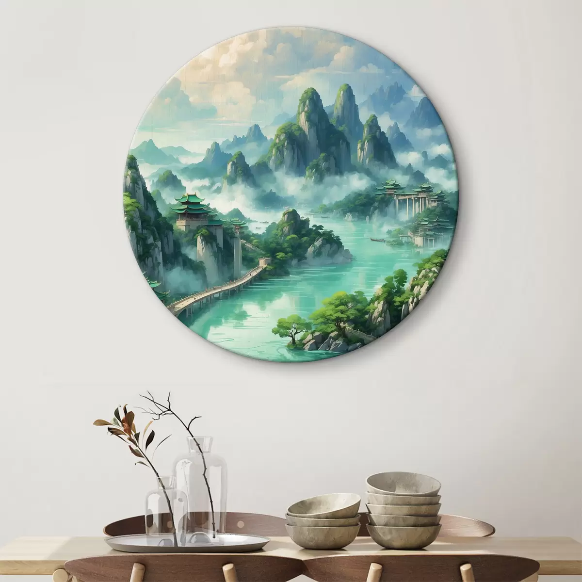 Kulaté obrazy Řeka s mostem a budovami r38184