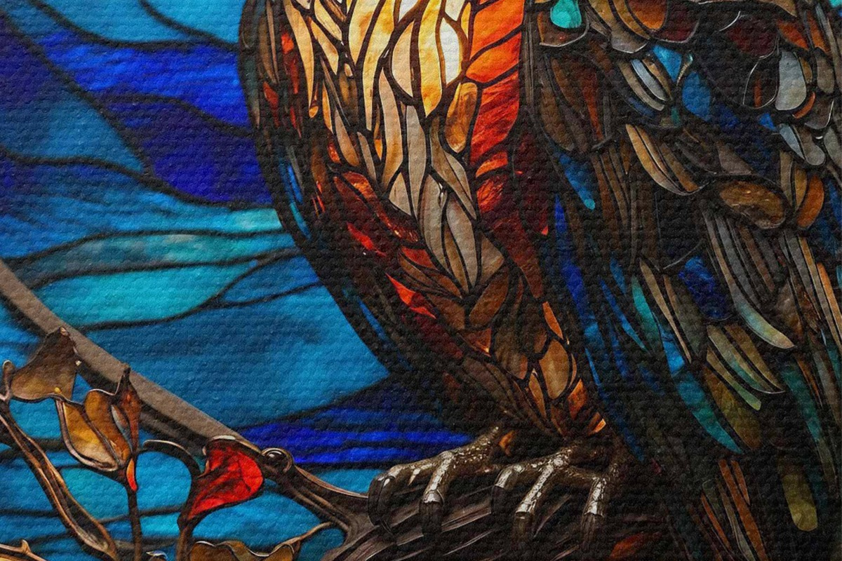 Obrázek Vitrážová sova na větvi stromu Nr r38185