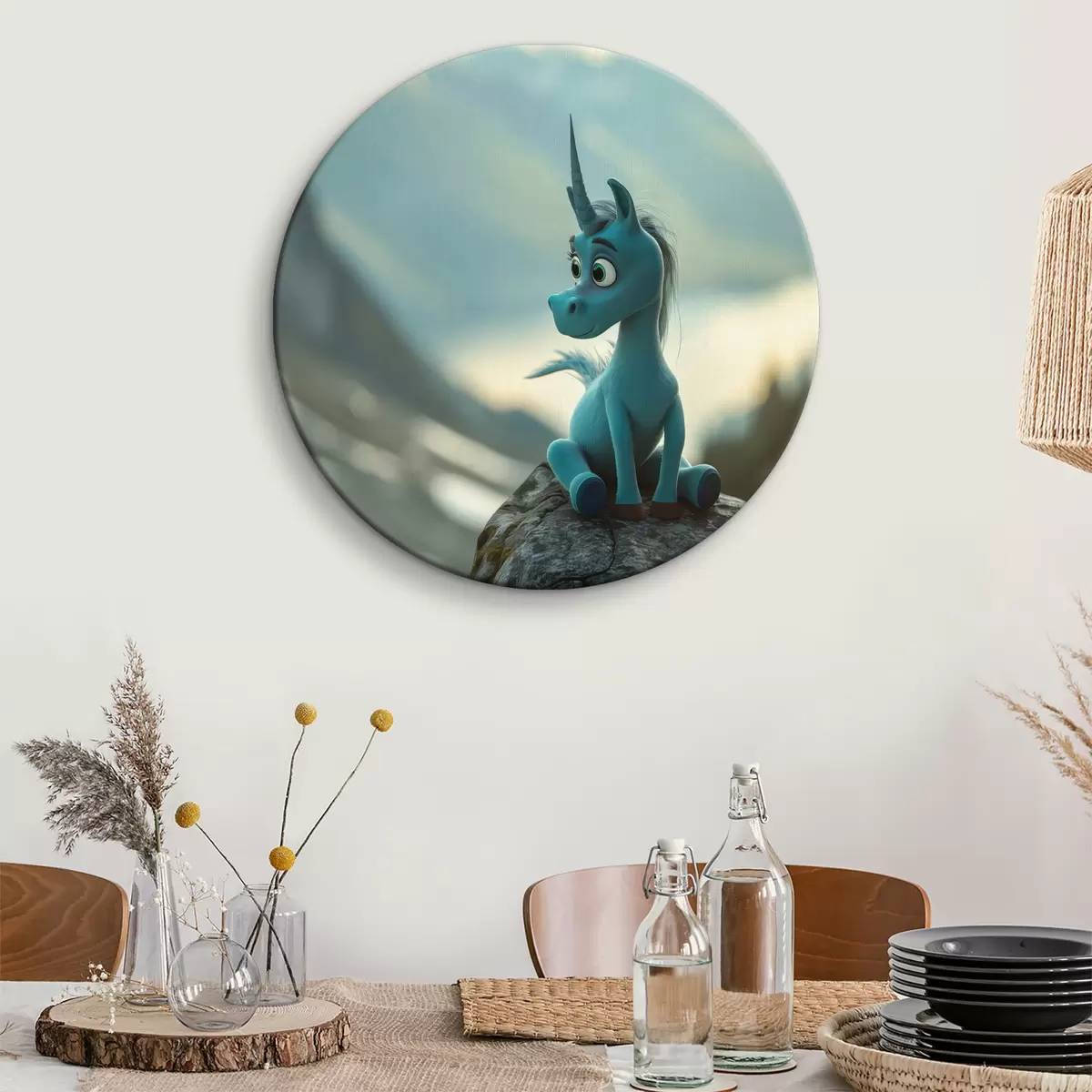 Obrázek Kresba modrého jednorožce sedícího na skále Nr r38274